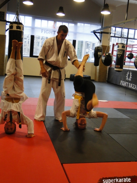 Перепрыгивание через палку в бранче заменили новыми необычными упражнениями типа стояния на голове, отжиманий, стоя на руках. Это для претендентов на пояса до 5 кю.