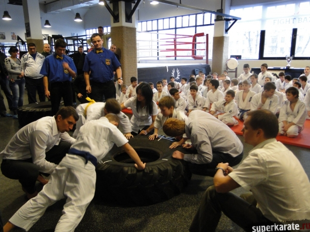 Была проблема с инвентарем, но мы ее решили просто: на первом Кубке Файт База, мы использовали только один снаряд – резиновый протектор от грузовика.