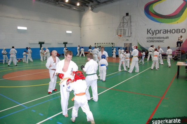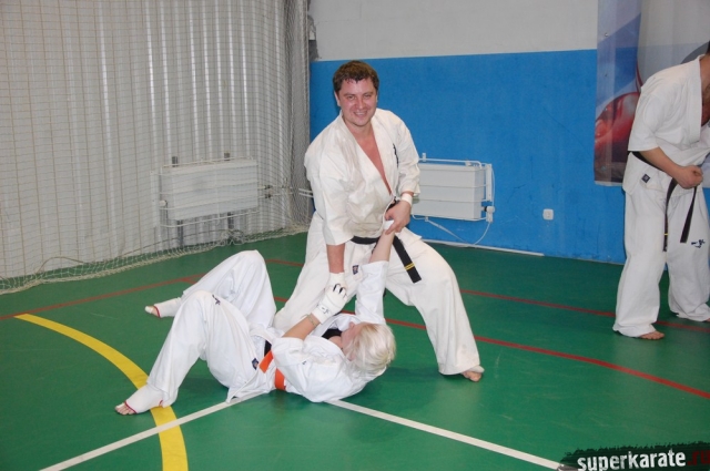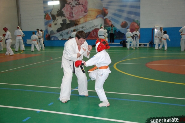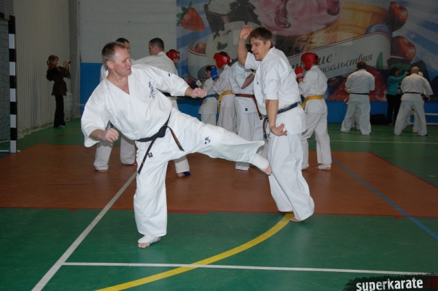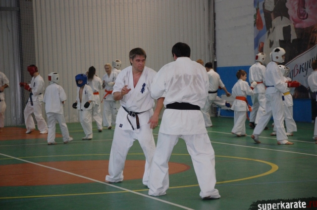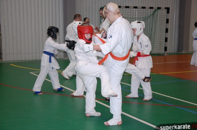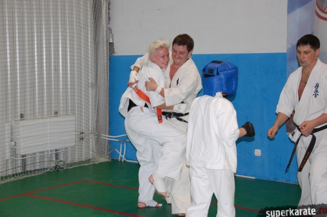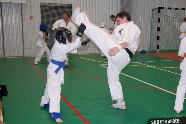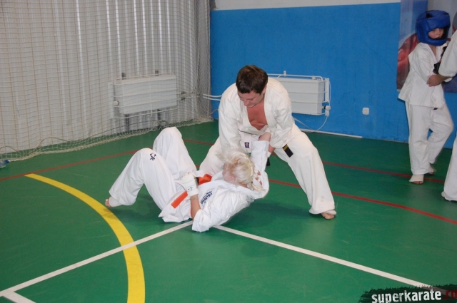 Затем все одели защиту, разбились на пары, организовали внутренний и внешний круг, поклоны, "Камаэте! Хаджимэ!" - и так от первого до пятидесятого боя, без остановок. Соперники попадались самые разные - от еще ожидающих Деда Мороза семилеток до вполне зрелых и опытных Сэнсеев.