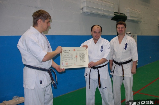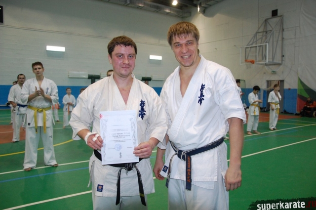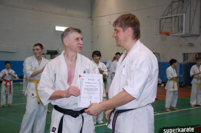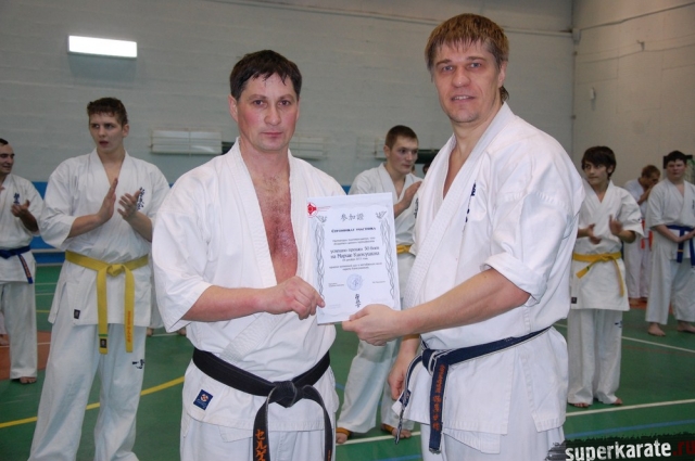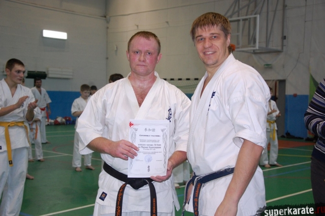 Все, кто собрались на спортивной базе "Курганово" в эту субботу, не сразу поняли, какое именно новогоднее действо приготовил для них Сэнсей. Сначала торжественно поздравили новоиспеченного Сэнсея Курчанина Д.С. и вручили 2 дан Сэмпаю Крапивину Ю.П.