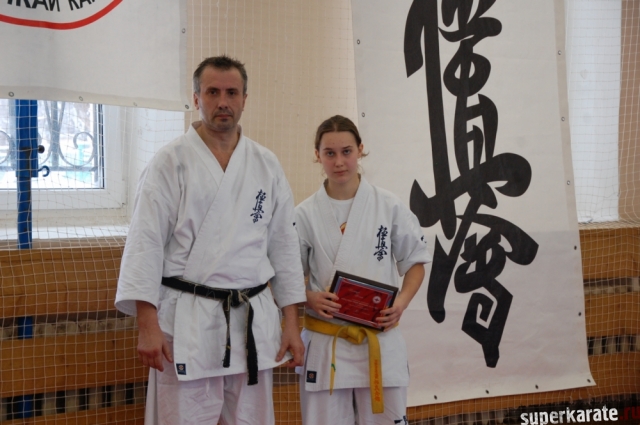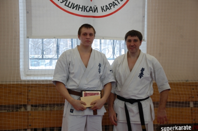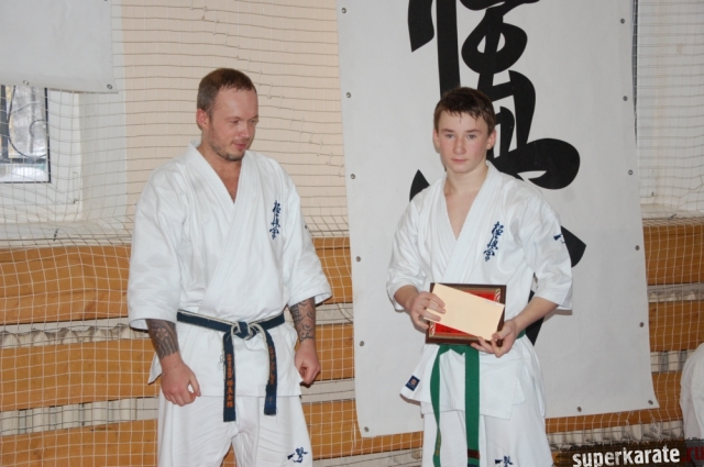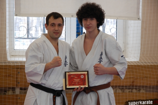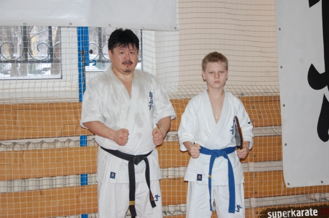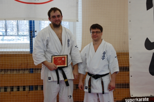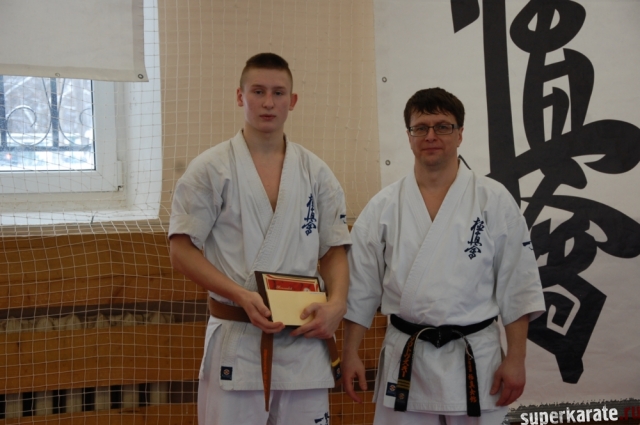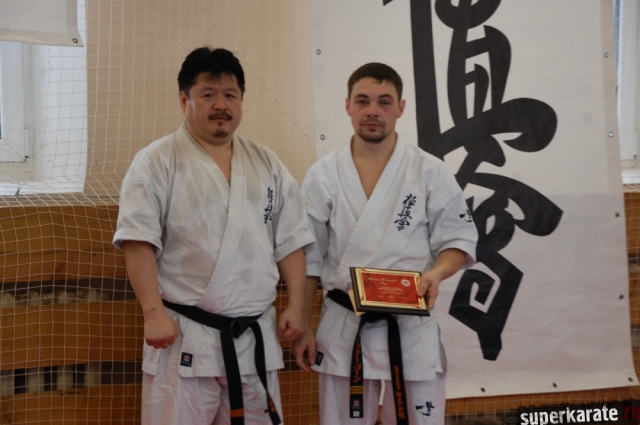 Золотовский Андрей Александрович, президент Ассоциации Киокусинкай города Москвы, вручил премию Могильникову Евгению.