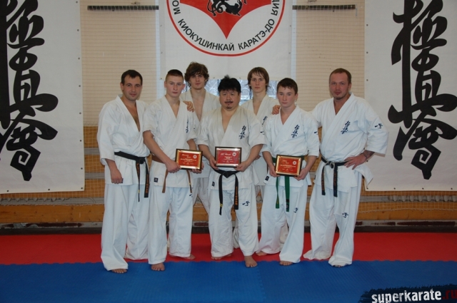 Первая совместная тренировка Московской Городской Федерации Киокушинкай Каратэ, которую организовали вместо традиционного предновогоднего фуршета президент МГФКК А.В.Башлыков и вице-президент ЗРОКК В.Б.Белов, прошла 15 января и собрала в зале около 50 ведущих тренеров, спортсменов и руководителей клубов. После традиционной разминки, кихона и офп, были подведены итоги прошедшего года. Наградили лучших из лучших!