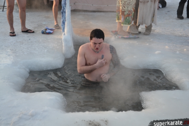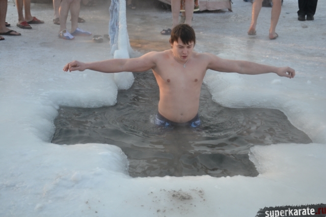 Красноярские каратисты отметили Крещение Господне. Это духовный праздник. По традиции в этот день проходят крещенские купания. Изменять традициям не стали и наши каратисты, несмотря на 30 градусный мороз.