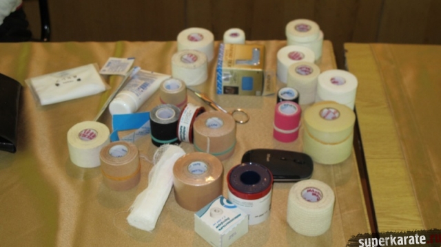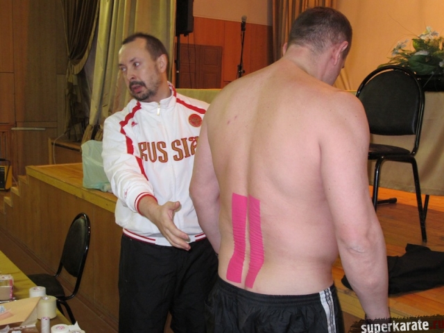 На вечерней тренировке, после семинара несколько человек остались в тейпах, которые им накладывал доктор Прошкин. Все наложенные тейпы подтвердили свою эффективность.