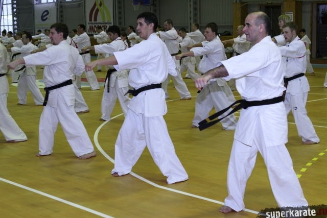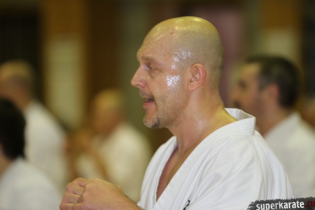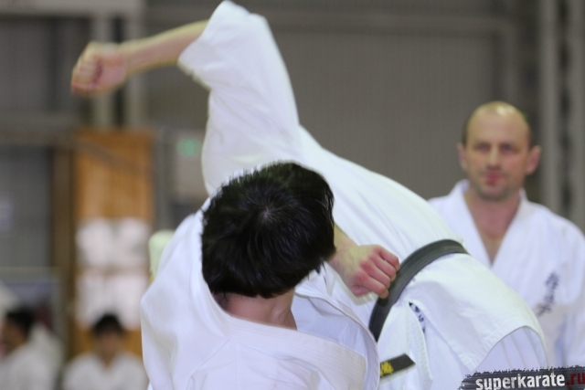 Вторая тренировка начиналась в 10 утра и была посвящена Базовой технике каратэ - отработке кихона и шлифовке ката. Эту тренировку вели российские шиханы и сэнпай Макото Акаиши. Ничего принципиально нового на десятичасовых тренировках не было, на то она и База.