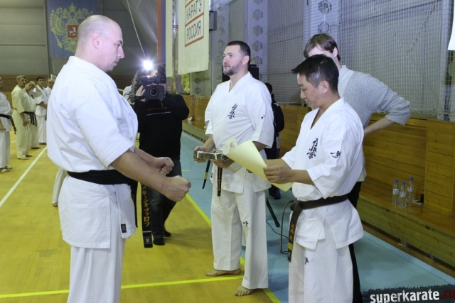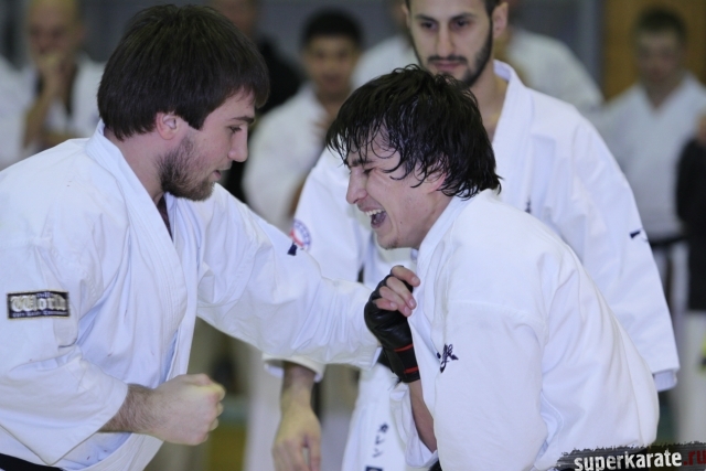 У Габараева это уже вторая попытка сдачи на первый дан. И если в первый раз прокололся на технике, то сейчас он этот пробел в своем киокушиновском образовании закрыл, но... как смеются товарищи Лаши, возможно зря он уронил японского гостя на пол...