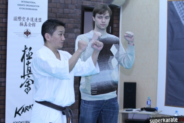 Печаль сразу исчезла и из тела, и из глаз японского мастера. Резкие и четкие движения, команды и объяснения притягивали внимание и не оставляли вопросов. Скорость выполнения им идеального кихона впечатляет и показывает, куда нужно стремиться в постижении техники.