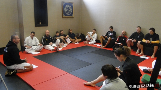 Встреча обещала быть интересной – состав участников семинара расширился, в их число входили тренеры Киокушина из Санкт-Петербурга, Москвы и Подмосковья. У каждого из них за плечами помимо личного тренировочного и соревновательного опыта накоплен колоссальный запас знаний по проведению тренировок и подготовке спортсменов к соревнованиям. Давать теоретический семинар такой искушенной аудитории - нелегкое, даже рискованное дело.