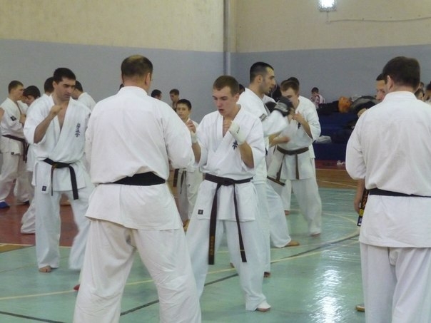 Квалификационный экзамен для черных поясов до 3 дана продолжался 6 часов и был весьма интенсивен. Несмотря на тяжелую и изнурительную сдачу техники, кондиции и физо, практически все успешно подошли к завершающему этапу – аттестационным поединкам. По нормативам на 3 дан сдавали - 40 боев, на 2 дан - 30 боев, на 1 дан - 20 боев, на 1 кю -10 боев.