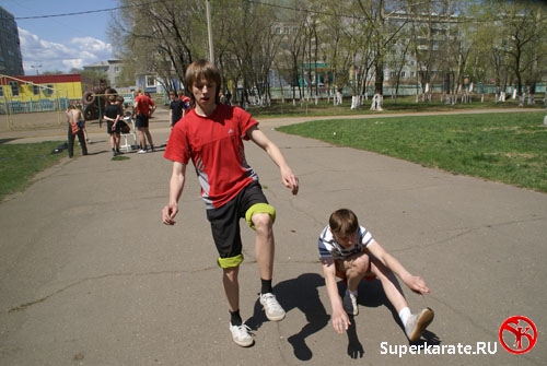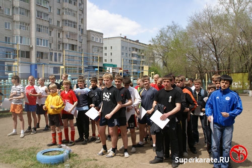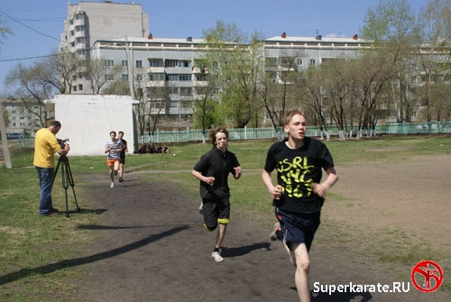 Спортсмены Амурской региональной корпорации «Киокусинкай-Кан» завершили учебно-тренировочный сезон 2009-2010 гг., проведя соревнования по пятиборью. Главная цель этого турнира – проверка общефизической подготовки. В этом году около тридцати спортсменов в двух возрастных группах по очереди проходили этапы пятиборья: кросс на тысячу метров, жим штанги, подтягивание, приседание и разбивание твердых предметов. Каждое из этих упражнений требует концентрации определенных волевых качеств и черт характера. Пятиборье – это своеобразный тест. Кто здесь показывает достойный результат, тот потом будет умело держаться на татами. В возрастной группе 14-15 лет победителем стал Антон Аношкин, в категории 16-17 лет - Владимир Беленин. Оба спортсмена из Благовещенска.
