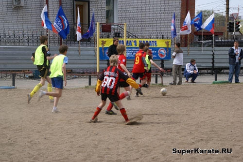 И еще одно мероприятие, которое традиционно проходит в Амурской региональной корпорации «Киокусинкай-Кан» в завершении учебно-тренировочного сезона. Это турнир по футболу. Каратэ хоть и главный вид спорта для спортсменов корпорации, но футбол здесь не менее популярен. На стадионе встретились 13 команд. Ребята приехали со всей области. Турнир провели в двух возрастных группах – 12-14 лет и 15-17 лет. Три дня напряженных баталий, соревнования проходили по олимпийской системе. Проигравшая команда выбывала из игры. В этом году в турнире участвовали спортсмены из федераций, входящих в состав Амурского филиала Российского союза боевых искусств. Первые места в обеих возрастных группах заняла команда Амурской детско-юношеской военно-патриотической организации «Россия». Второе место в младшей возрастной группе заняла команда из Белогорска, а третье команда каратистов из Райчихинска. В старшей возрастной группе серебряная ступень пьедестала у спортсменов из Свободного, а третья – у сборной команды областной спортивной школы олимпийского резерва.