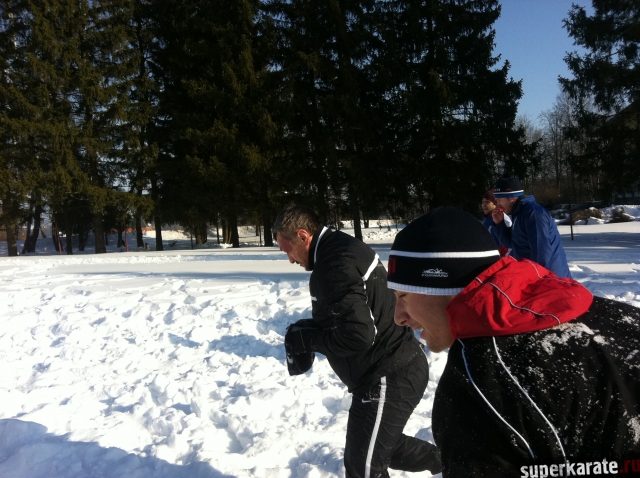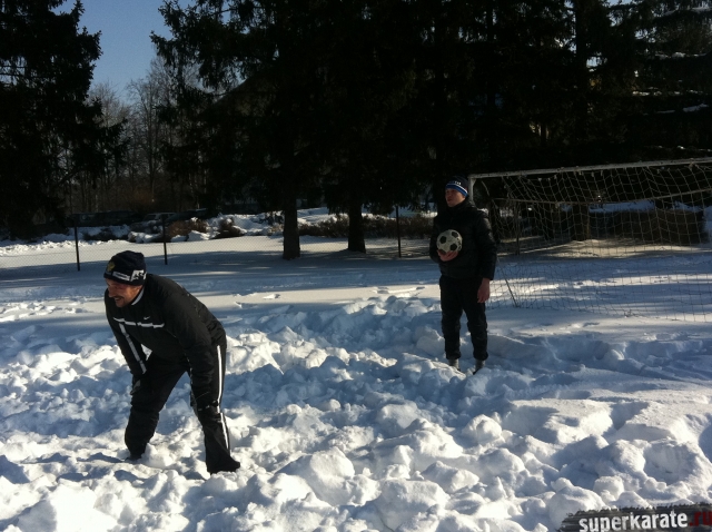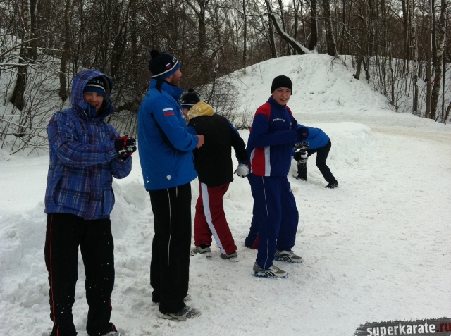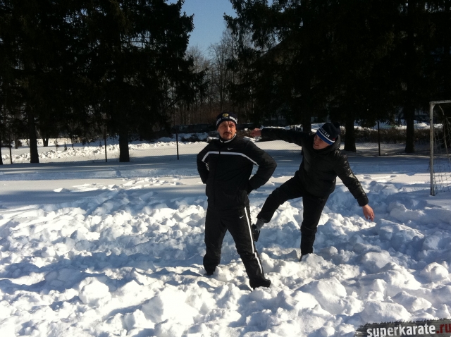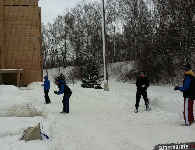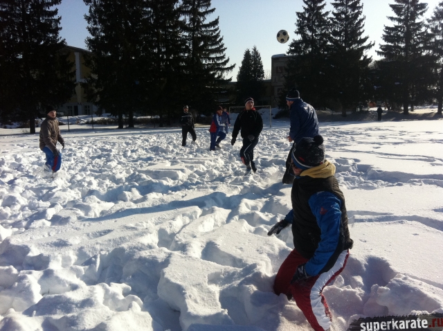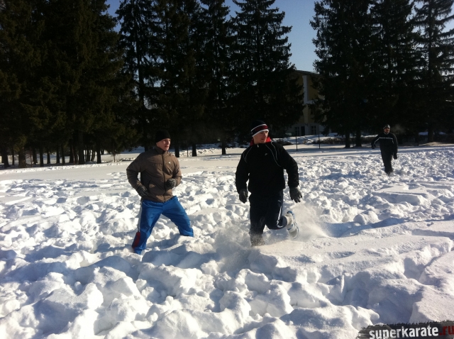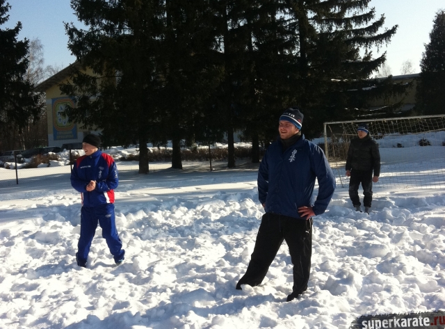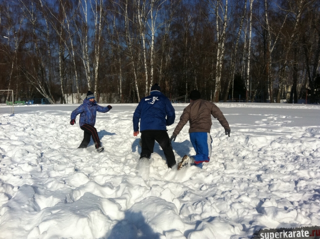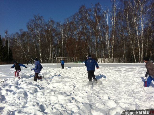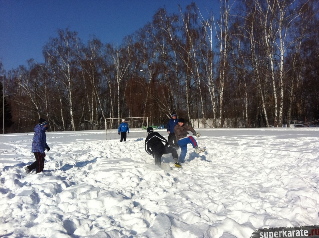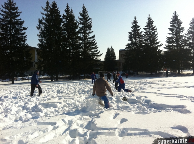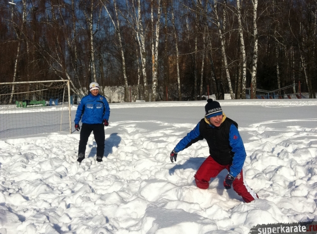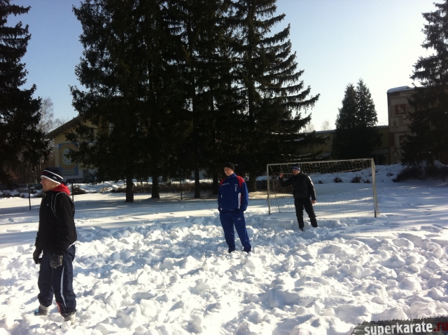 Бойцы помимо традиционной предсоревновательной подготовки провели турнир по снежному футболу и поиграли в киокушиновские "снежки".