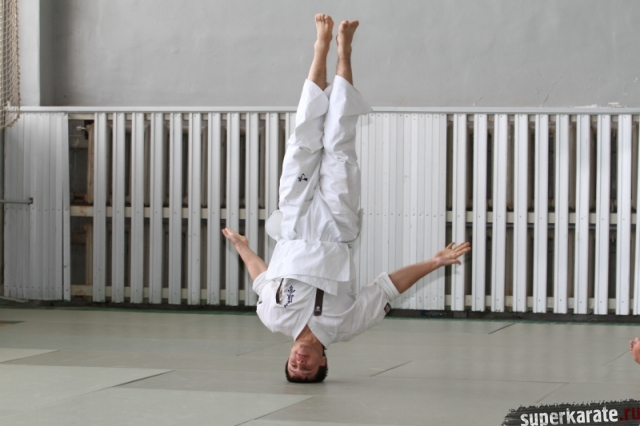Чемпионом сборной по стоянию на голове без помощи рук стал Лаша Габараев.