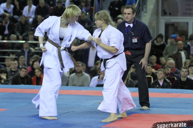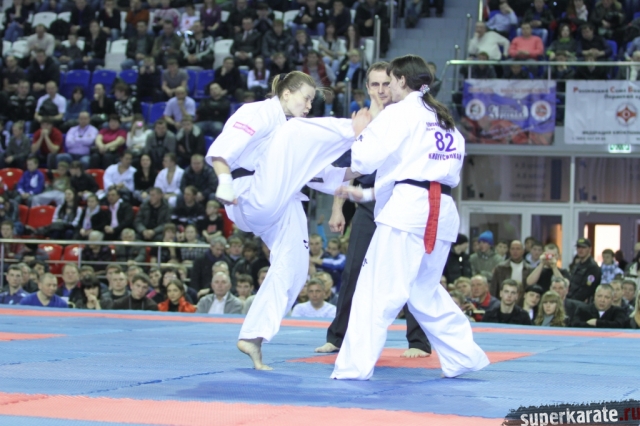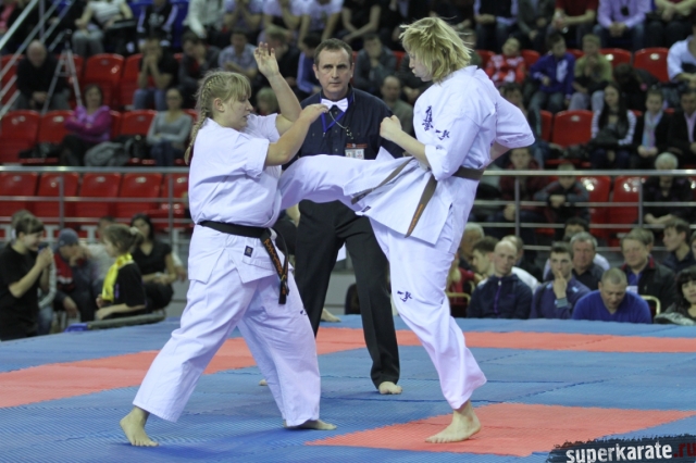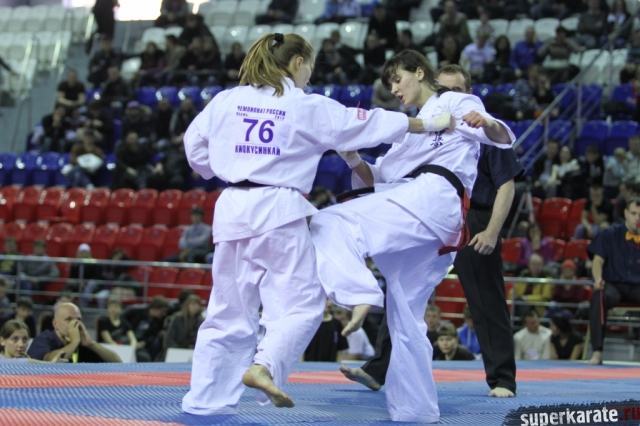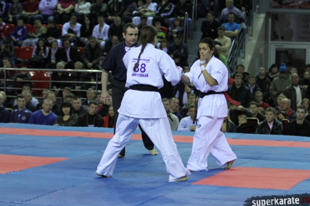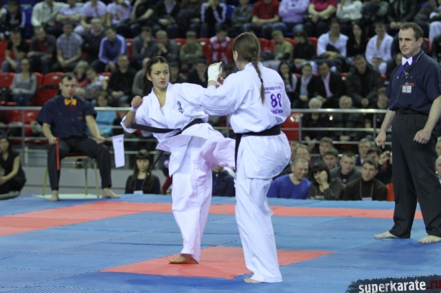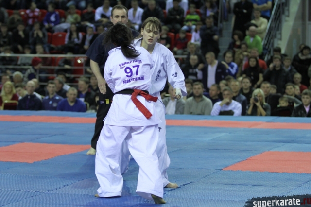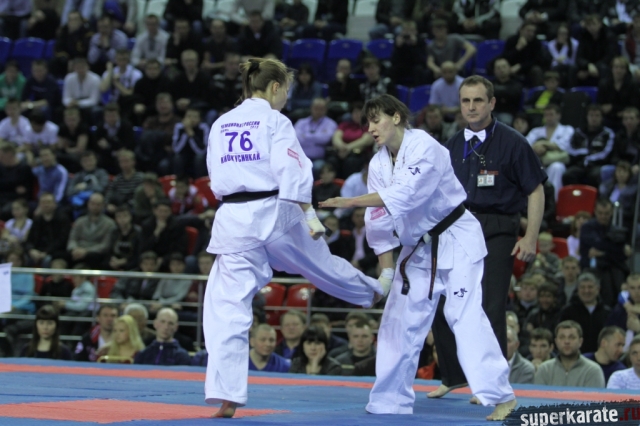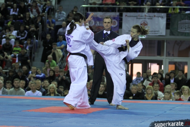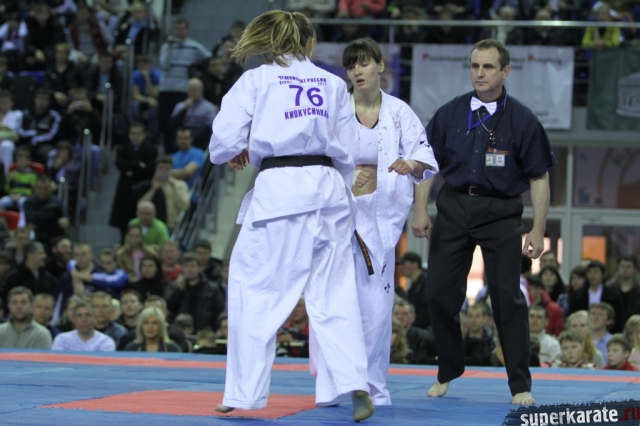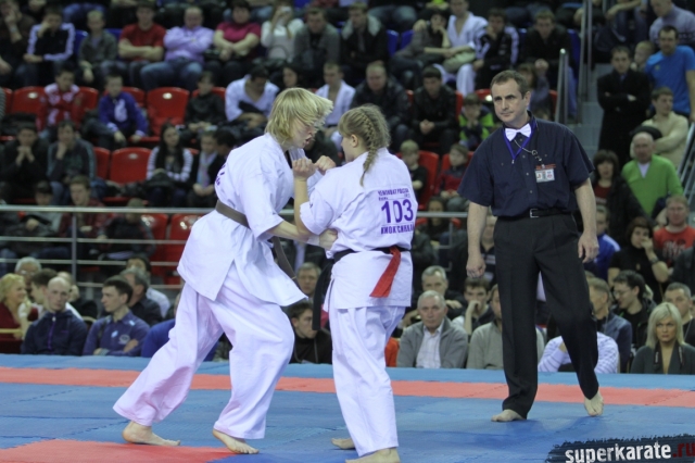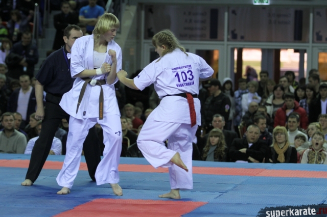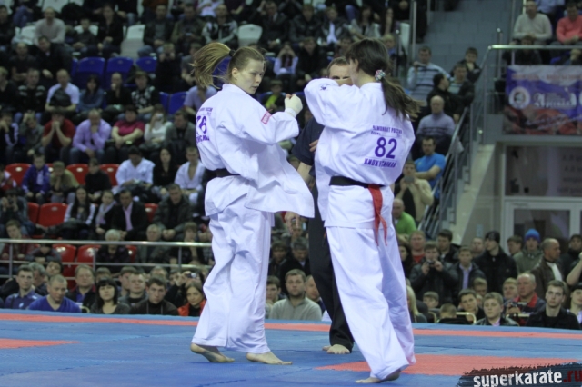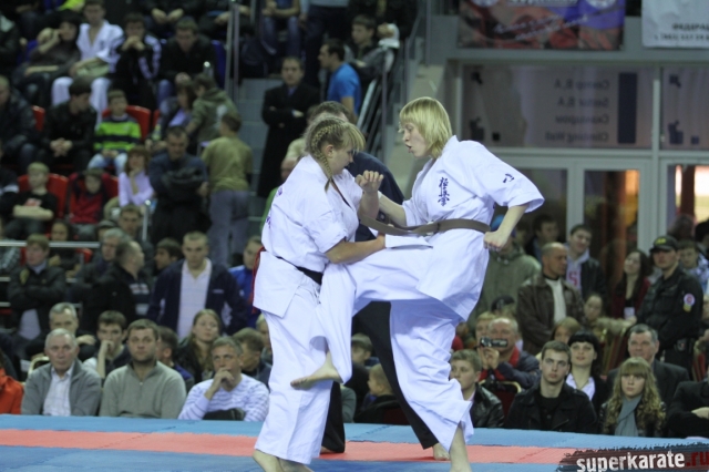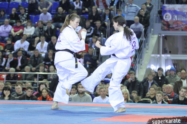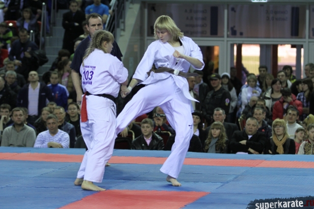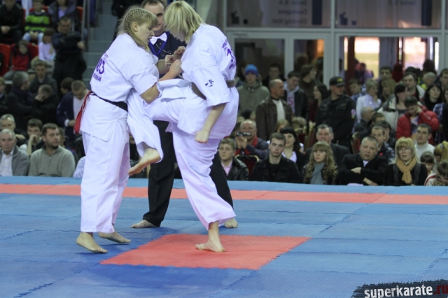 В женских финалах Чемпионата России по каратэ киокушинкай сошлись на татами пары бойцов: Елена Воробьева и Елена Гулько, Анастасия Хрипунова и Дильшода Умарова, Валерия Дорошенко и Анна Егорова.