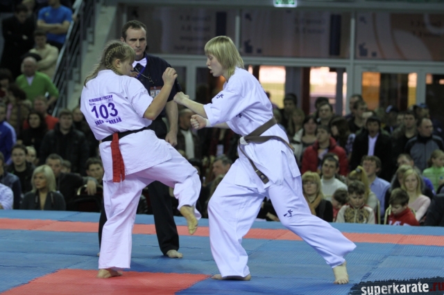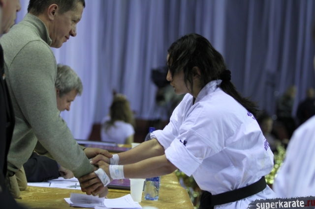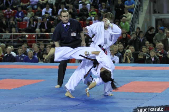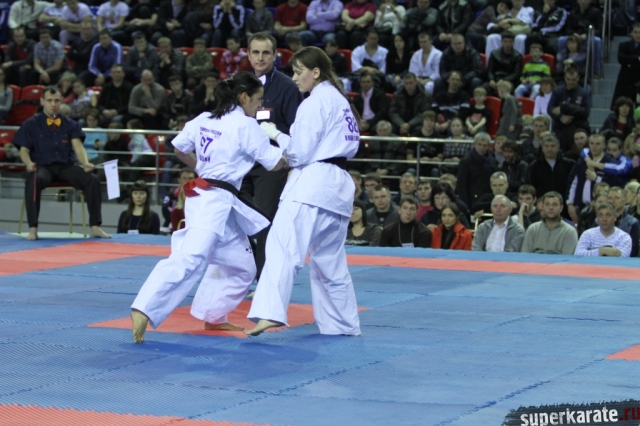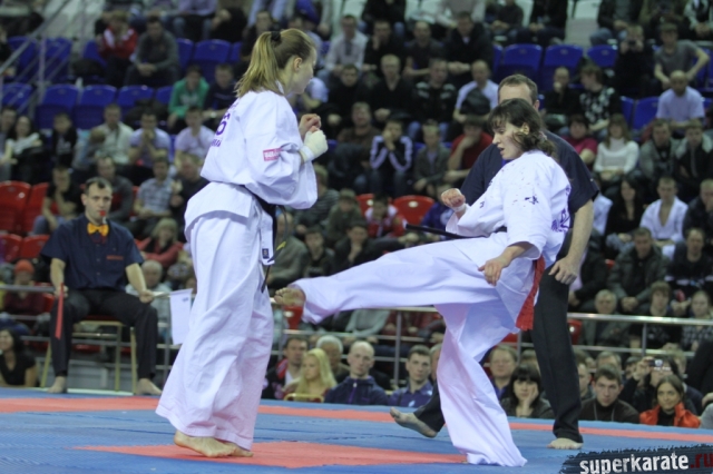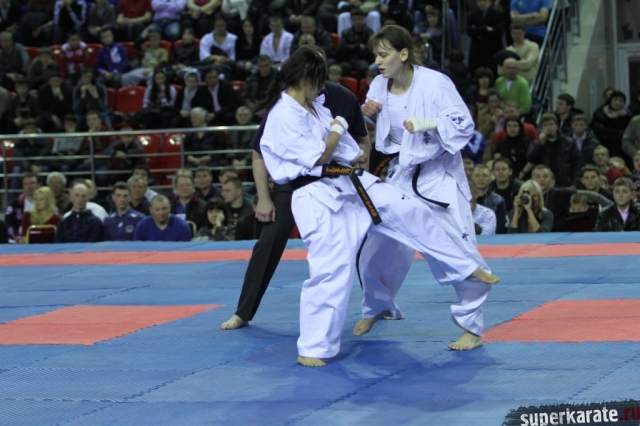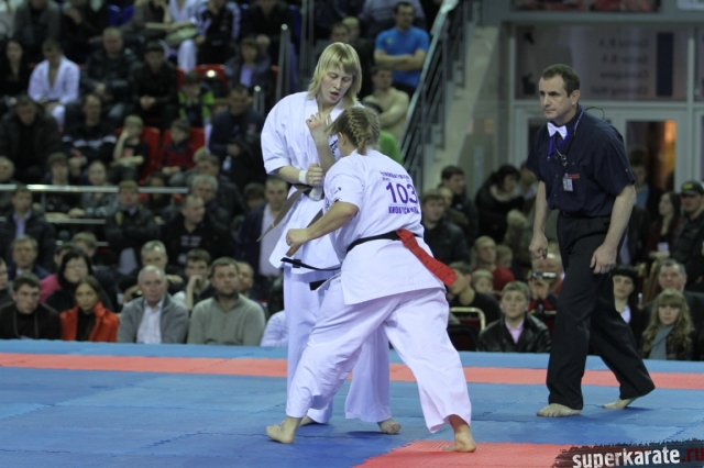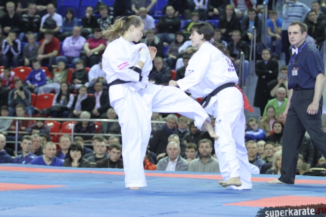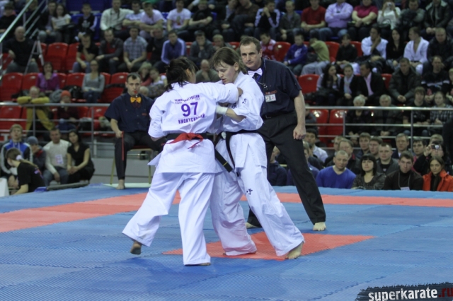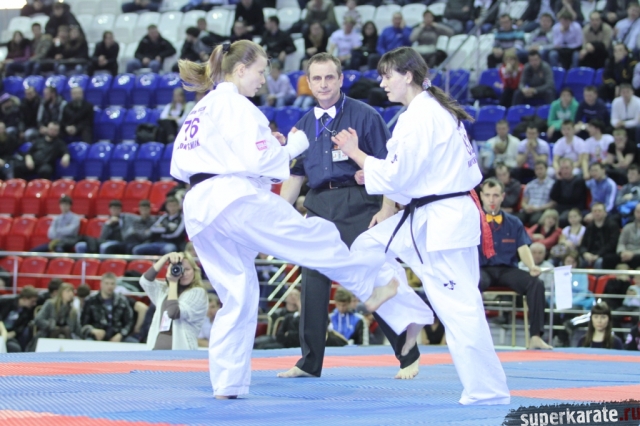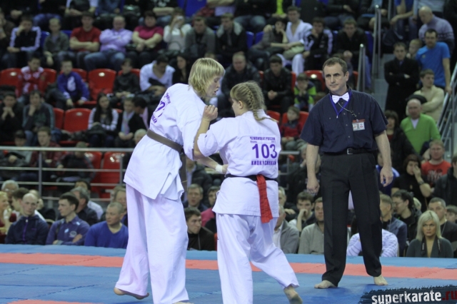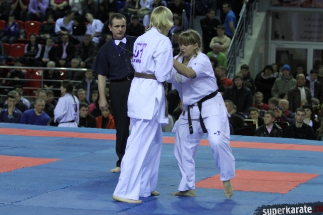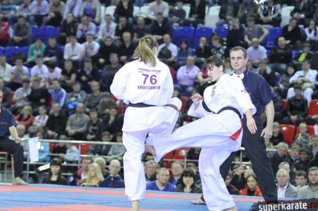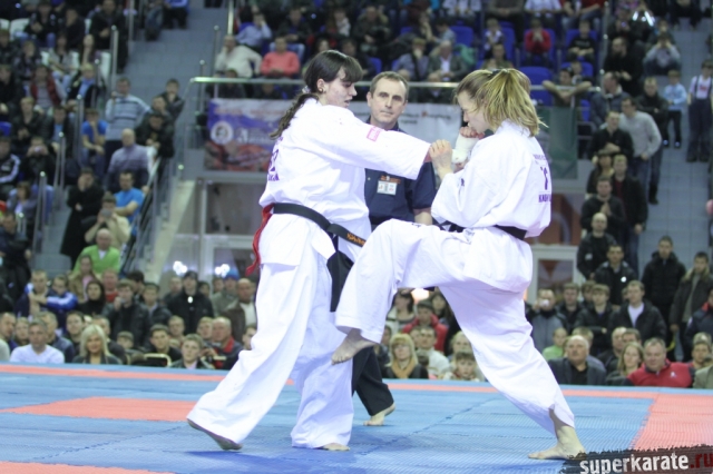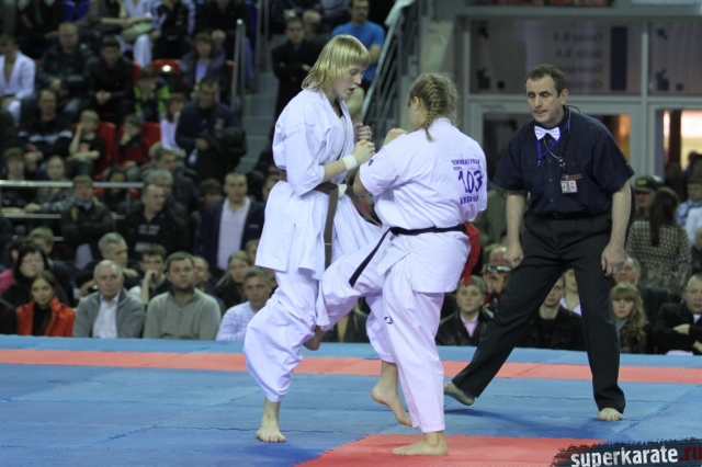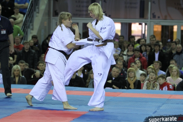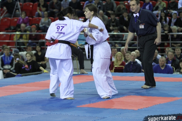 В женских финалах Чемпионата России по каратэ киокушинкай сошлись на татами пары бойцов: Елена Воробьева и Елена Гулько, Анастасия Хрипунова и Дильшода Умарова, Валерия Дорошенко и Анна Егорова.