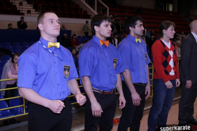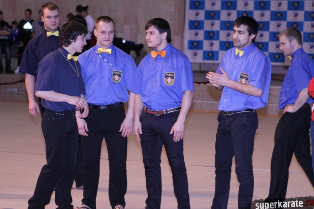 Трудно было без улыбки смотреть на молодых, но уже авторитетных бойцов, которые сбились в свою, отдельную от основной массы судей, группировку синерубашечников в бабочках.