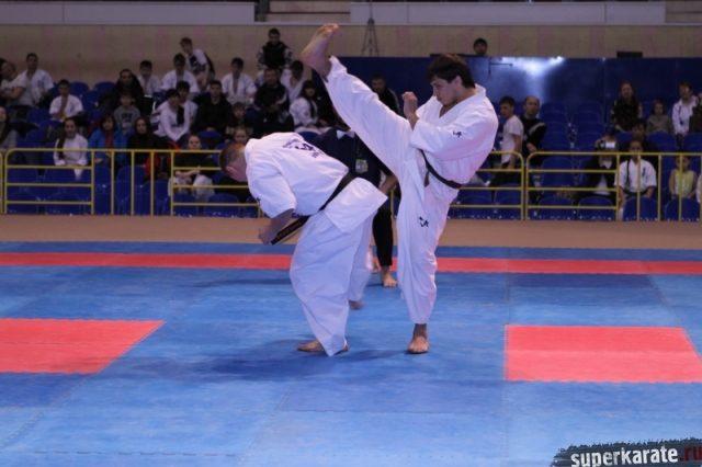 Одни из самых техничных российских бойцов сборной Лаша Габараев и Андрей Чирков все-таки одели каратисткое доги в этот день. Они вышли демонстрировать разрешенную/запрещенную технику перед боями за медали.