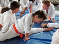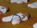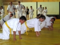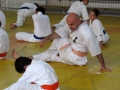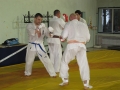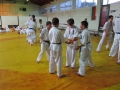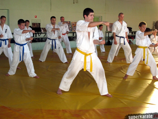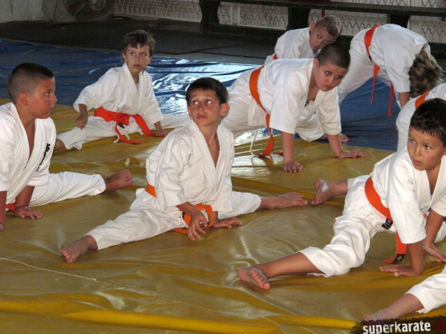 Уровень подготовки у всех занимающихся разный, возрастной диапазон тоже большой. Поэтому после общего построения и разминки занимающиеся делятся на четыре группы. Доджо состоит из двух смежных просторных залов, старшие пояса и взрослые новички остались в большом зале, две младшие группы перешли в малый зал.