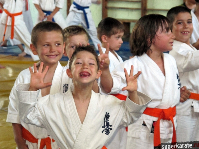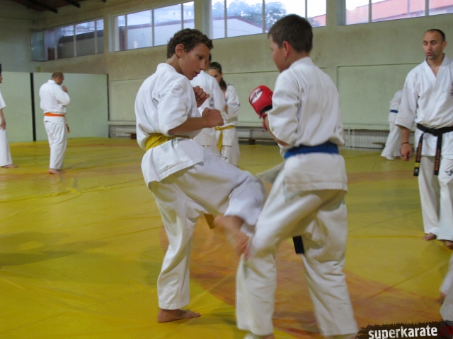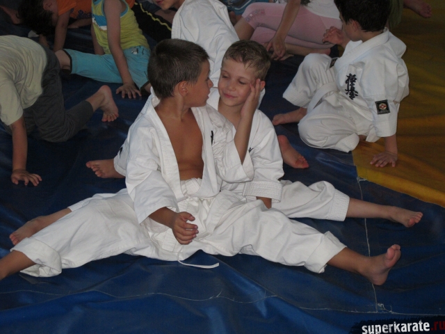 Полноценное кумитэ проходит только в старшей группе, бои идут в круговую. Некоторым парам сэнсей дает подраться, некоторым говорит работать только техничный лайт.
