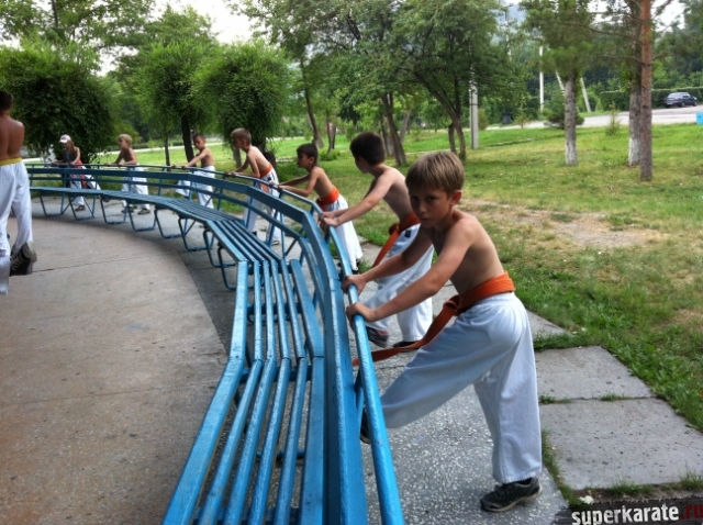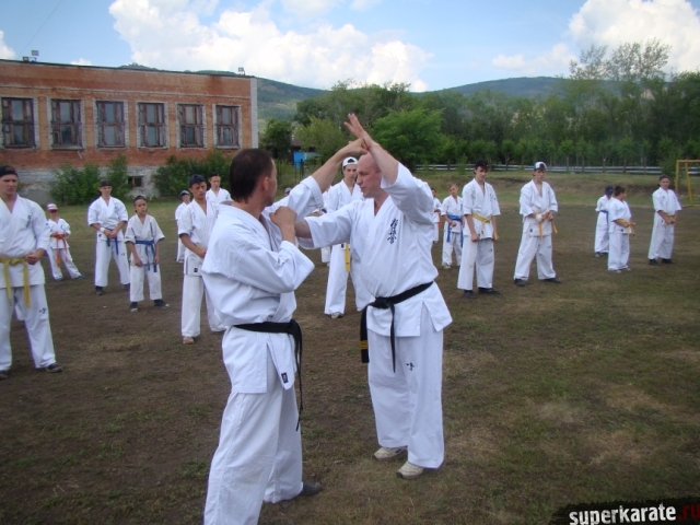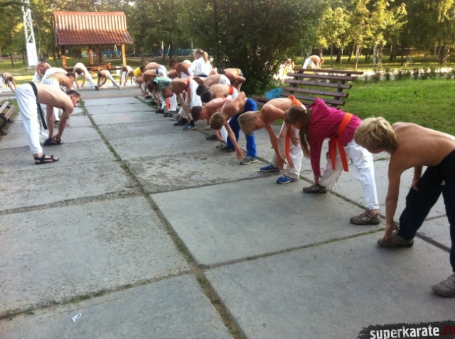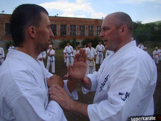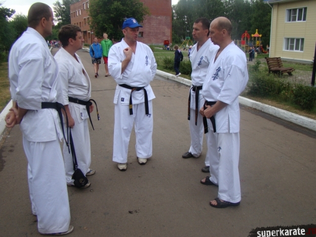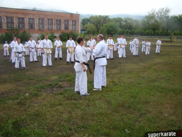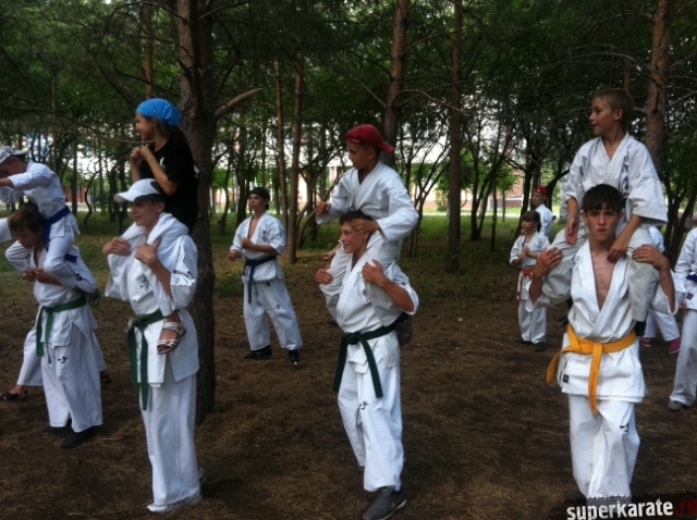 Утренние тренировки проводил Шихан Гедз Валентин, который доступно объяснил детали стандартной тренировки киокушина, включающей в себя разминку, кихон и ката.