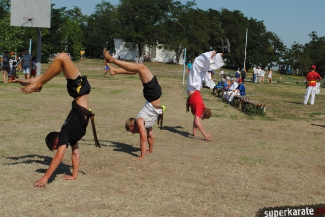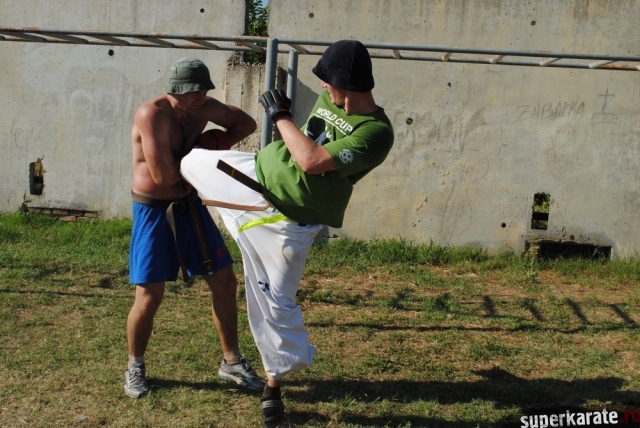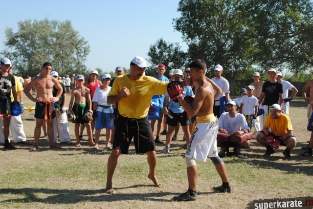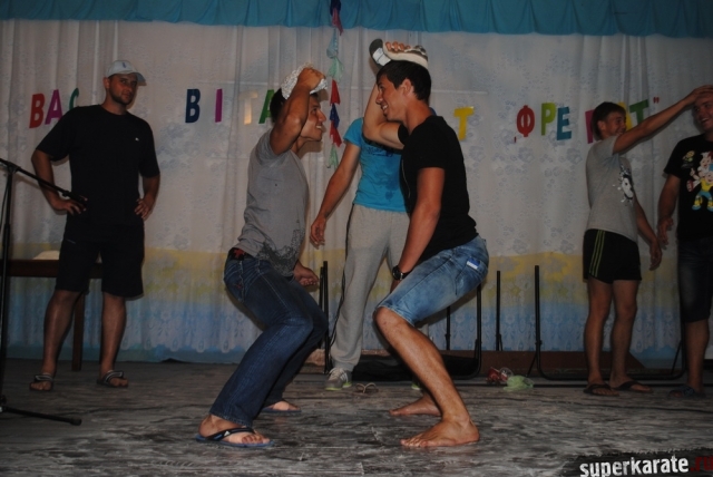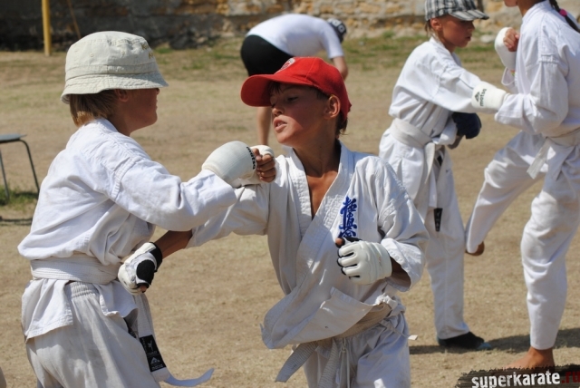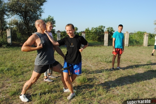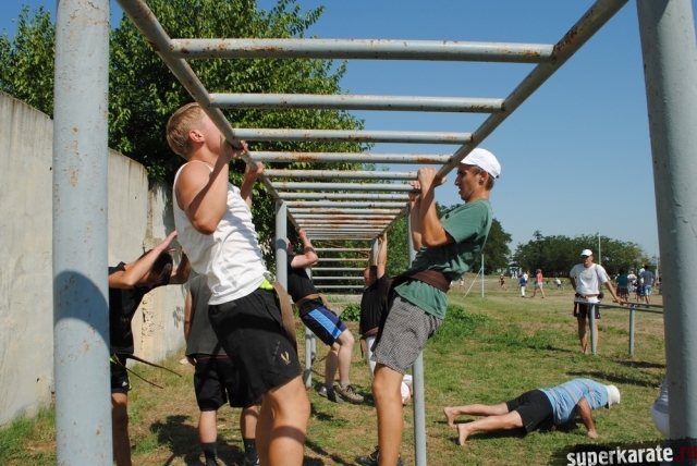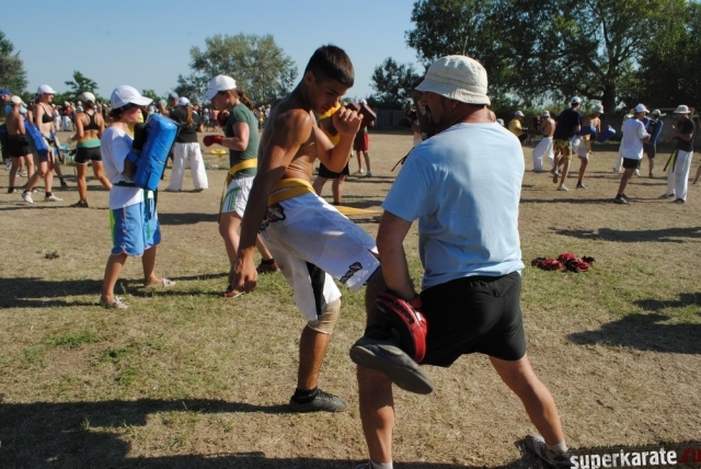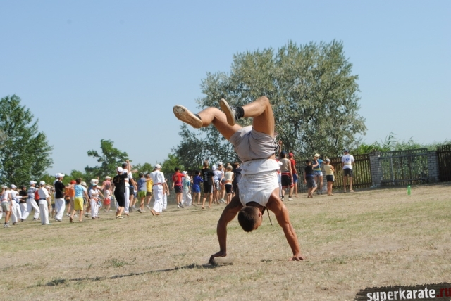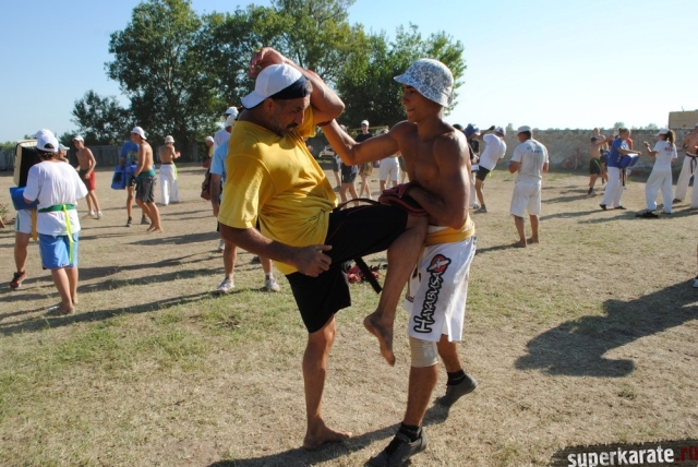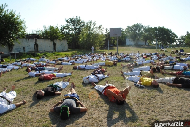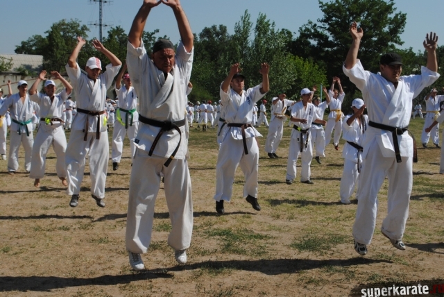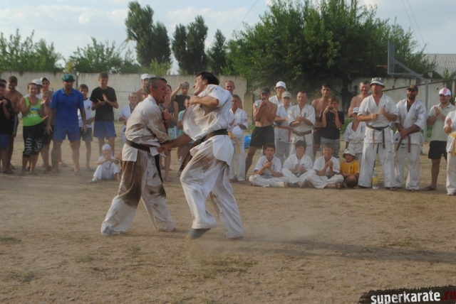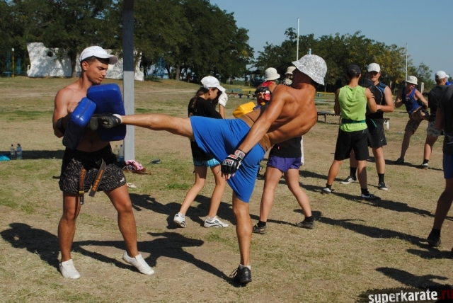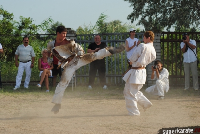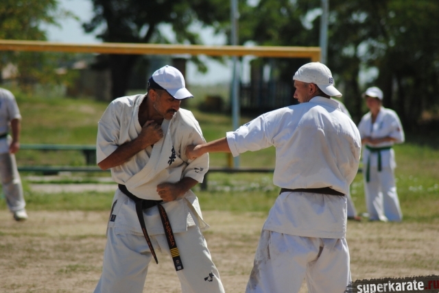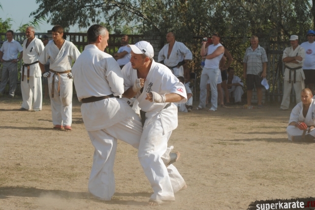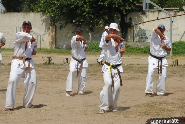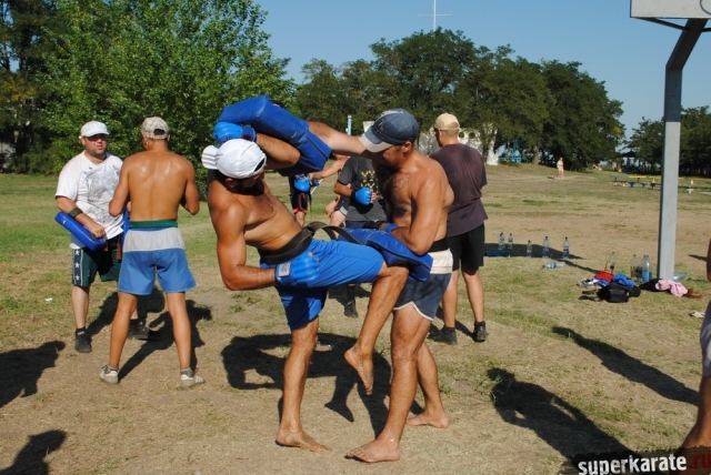 Утром каждый занимался своим делом. Малыши шли на зарядку и управлялись в гибкости и упражнениях на растяжку. Старшие под руководством Шихана Всеволодова изучали Бункай и отрабатывали его применение. Сборники, возглавляемые то Сенсеем Семеном Гараном, то Сенсеем Дмитрием Прасоловым «разминались» в функциональной подготовке – километрами беговых упражнений, сотнями прыжков и выпадов, маваши, уширо-маваши и их комбинациями, а в окончании перемещались на тренировку бункай и на расслабляющие упражнения на гибкость суставов, которые специально разработал для уставших ног спортсменов шихан Всеволодов.