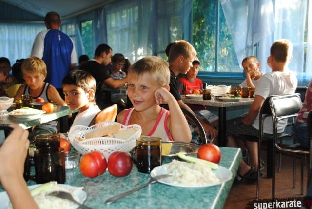 А дальше традиционно 3 группы каратистов, разделенные по поясам на младшую, среднюю и старшую тренировались 4 раза в день по 1,5 – 2 часа. Отдельно утром была выделена группа «сборников», ребят представляющих основной состав сборной Украины, кандидатов в сборную, а также бойцов, занимающих призовые места на внутренних чемпионатах.