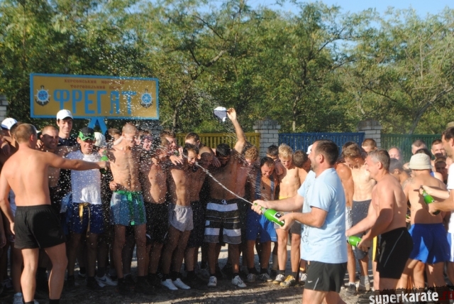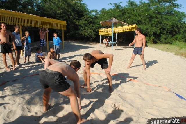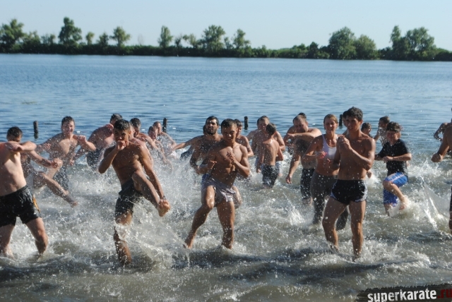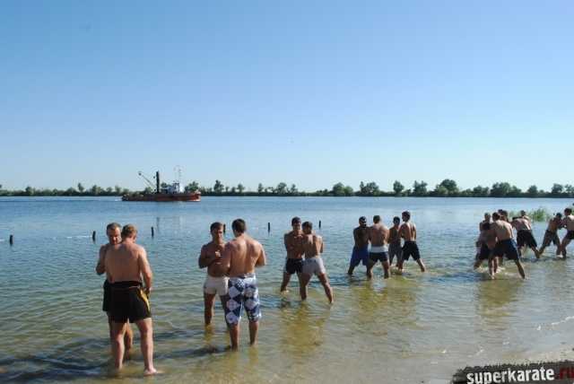 5-й тренировочный день разнообразили утренний 15-ти километровый кросс, боевая тренировка в воде и соревнования в сумо и перетягиванию каната.
