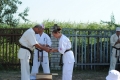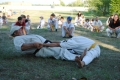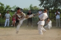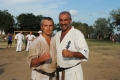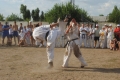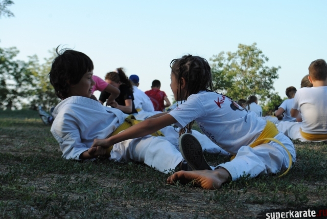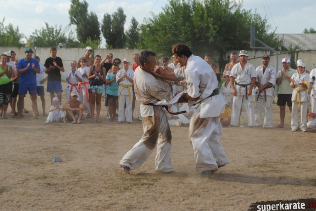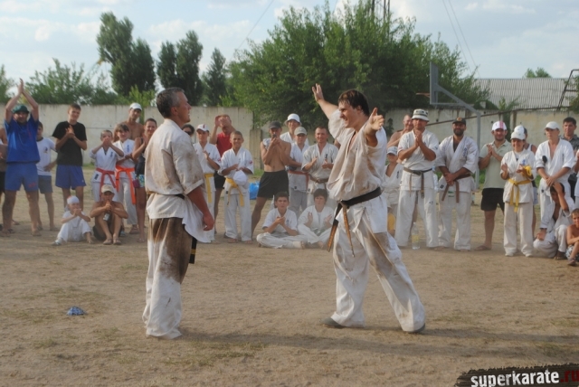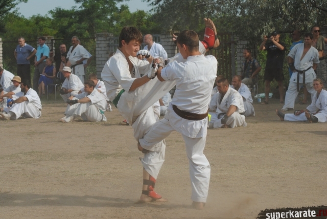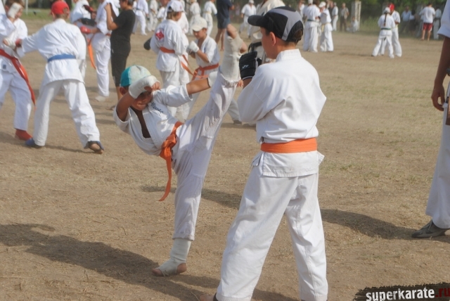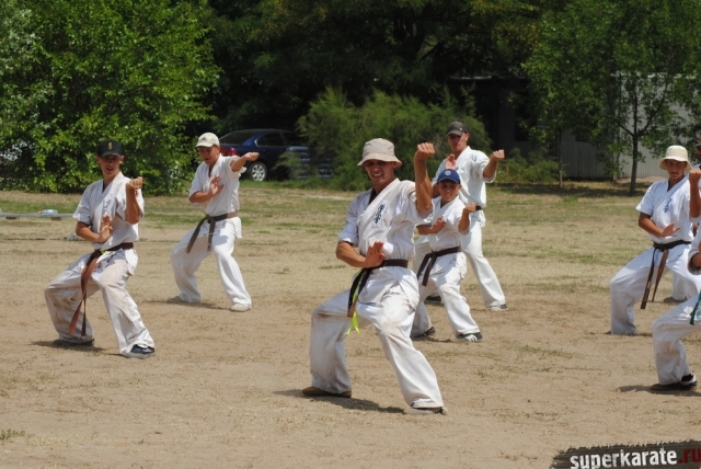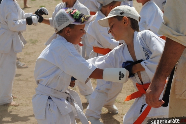 Ну и конечно день экзамена! Самый тяжелый, самый страшный, самый волнительный и непредсказуемый. Всех разбудили на 25 минут раньше, чтоб успели выйти на встречу рассвета. Встретили и понеслось! Куча детворы, растерянные лица, грозное всевидящее око Шихана, техника-ката-техника-ката и опять техника! Группы поясов сменяющие друг друга. И когда, наконец, подошла очередь к сдающим на высшие пояса, на пыльном, жарком поле почти никого не осталось. Но, несмотря на отсутствие зрителей и тяжелый воздух, ребята старались показать все, на что способны и к чему готовились весь год. А в 16:00 начался марафон кумитэ.