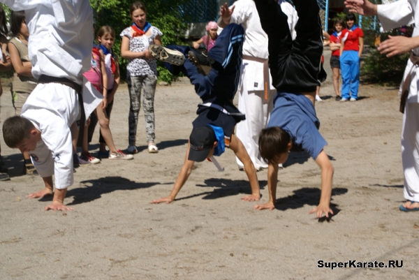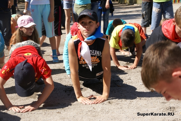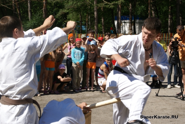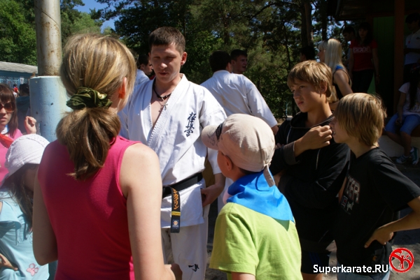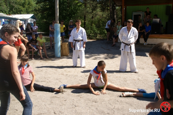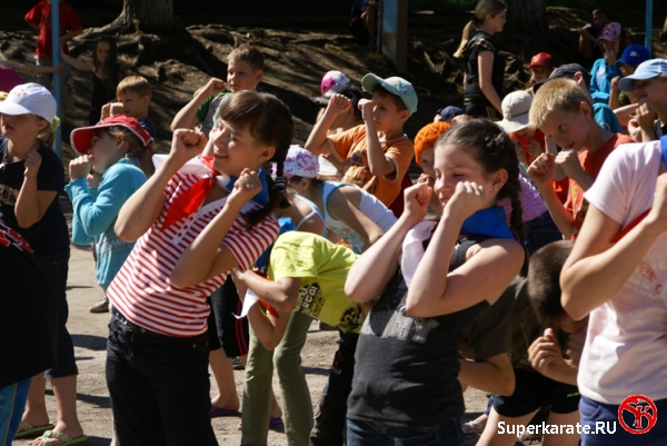 В загородном лагере «Огонек» подходит к концу профильная смена «Мы – юные россияне!», организованная Амурским региональным общественным движением «Юный Россиянин». На днях в гости к ребятам приезжали спортсмены Благовещенской городской общественной организации «Киокушинкай-Кан». Они провели мастер-класс по каратэ киокушинкай. Все происходило, как на настоящей тренировке: сначала разминка, затем отработка элементов техники каратэ. Потом ребята показывали навыки общефизической подготовки, ходили на руках, демонстрировали растяжку. Завершился мастер-класс показательными выступлениями спортсменов-каратистов.