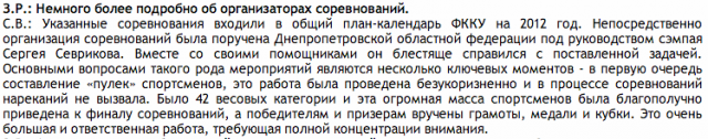 Вот тут уж хотелось бы задать вопрос! Раз организатором был некий Сэмпай Сергей Севриков, которого половина украинского киокушина не знает (ну да ладно, написано же «вновь образованная» федерация, ради такого дела можно и своего человека поставить), тогда почему Почетный Президент Федерации занимался ведением «пулей» спортсменов, объявлением участников и секундированием одновременно?