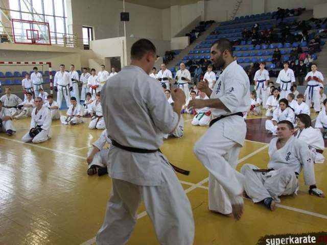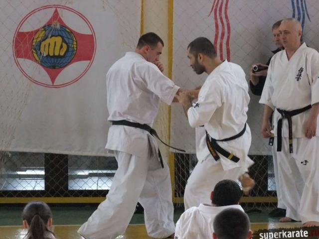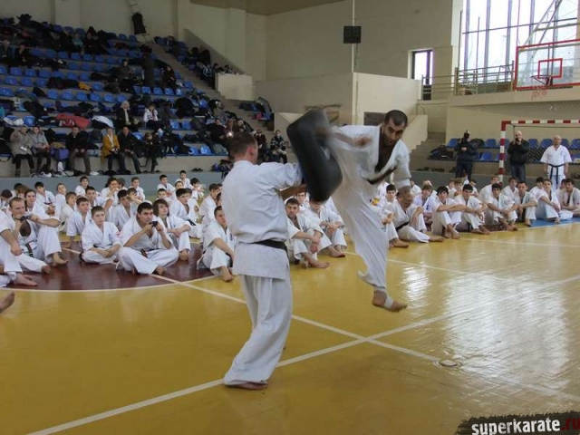 2. В рамках Зимней школы по приглашению Крымской РФКК был проведен 3-х часовой Мастер-Класс под руководством Лечи Курбанова по технике кумитэ: точечные удары руками и ногами, связки и комбинации для применения в кумитэ, специальные упражнения для выносливости и подготовки к соревнованиям, комплекс упражнений для скоростной и силовой выносливости, работа с лапами, работа парами и другое.