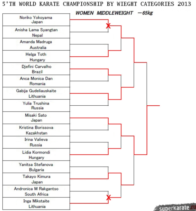 12:00 - Начало боев: мужчины легкий вес (-70 кг), женщины легкий вес (-55 кг), женщины средний вес (-65 кг)
