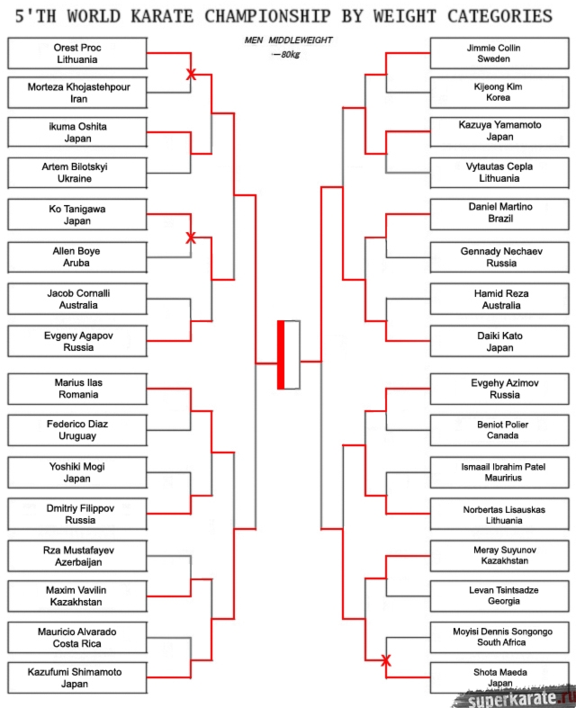 15:15 - Четвертьфиналы мужчины средний вес (-80 кг), мужчины тяжёлый вес (+80 кг)