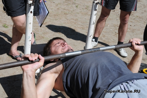 Главная цель этого турнира – проверка общефизической подготовки. В этом году желающих поучаствовать было много как никогда – 33 человека. Приехали инструктора из областных филиалов, участвовали инструктора спортивного комплекса «Колизей» (структурное коммерческое подразделение АРККК). Этапы «взрослого» пятиборья точно такие же, как и «детского» - кросс на тысячу метров, жим штанги, подтягивание, приседание и разбивание твердых предметов. Каждое из этих упражнений требует концентрации определенных волевых качеств и черт характера. Самое, пожалуй, сложное в этом этапе - психологический настрой.