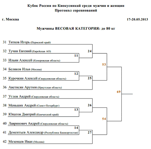 Пули Кубка России по киокушинкай
