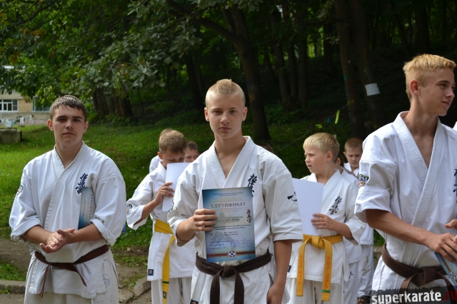 Дети изучали новые и практиковали уже известные им ката. В этом году у них была особая мотивация к этому, так как в конце сборов были организованы соревнования по ката среди мальчиков и девочек 8-9, 10-11 лет. Особый интерес был в том, что им пришлось выступать не только перед всеми детьми, но и перед администрацией лагеря, представители которой были в составе жюри. Все призеры были награждены грамотами и медалями, а зрители получили незабываемые впечатления от увиденного.