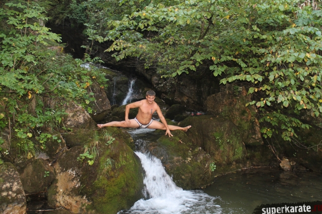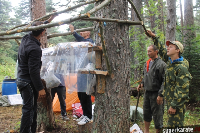 После процедур закаливания была проведена тренировка. На этот раз больше внимание тренера уделили физупражнениям и ката, ведь что может быть лучше, чем постигать гармонию своего тела и духа в горах!