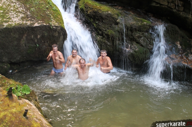 Следующий день был не менее интересным и захватывающим. Членов КРОО «ЮРФКК» ждал 3-х часовой поход на водопады, расположенные вдали от лагеря. Добравшись до них, инструктора воспользовались возможностью искупаться в чистейшей горной воде, температура которой не превышает 5 градусов. Все выдержали проверку природой достойно, некоторые не раз окунулись в воду!