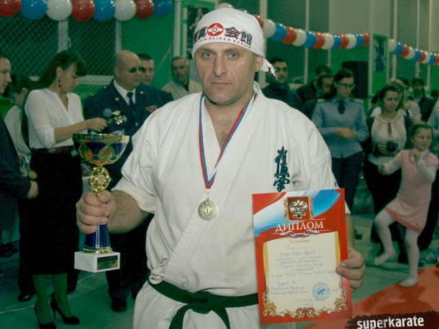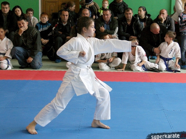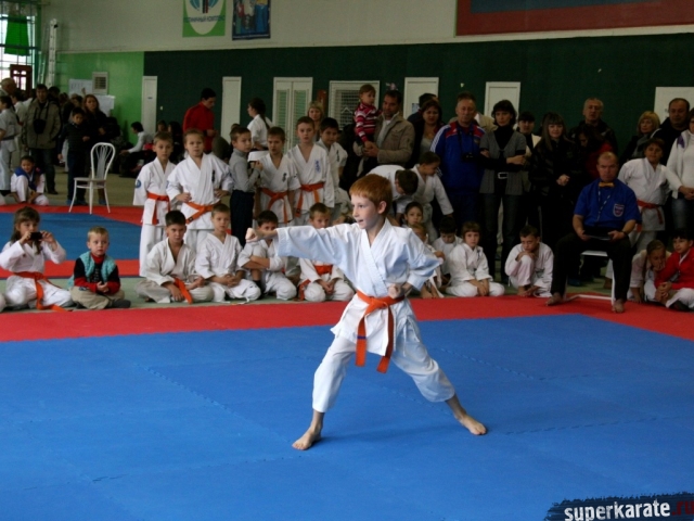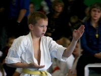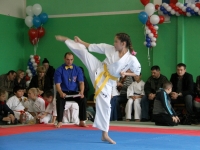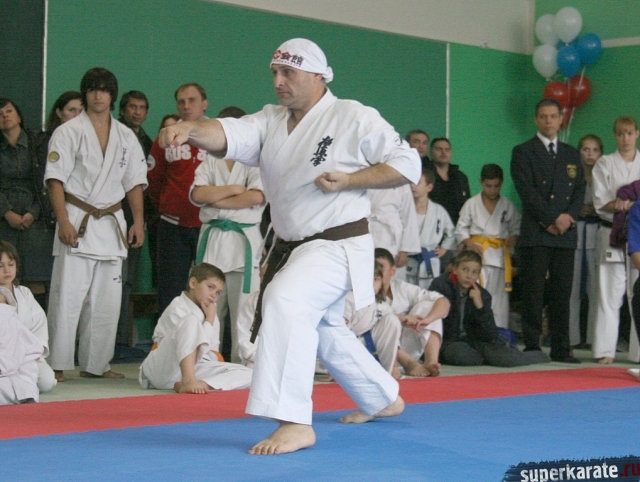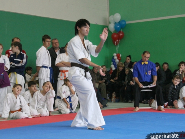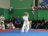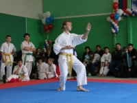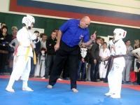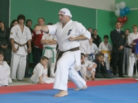 Александр Шумлянский (1 дан, Азов) со своими юными воспитанниками поразил присутствующих своей программой. Сначала он выполнил ката с катаной, а затем юные каратисты продемонстрировали приемы самообороны.