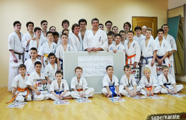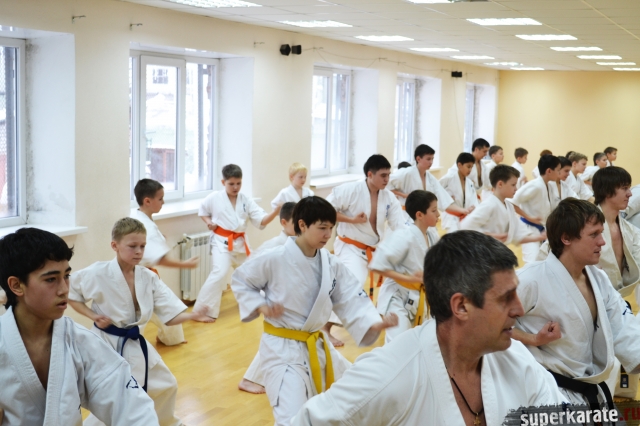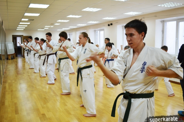Тренировка состояла из 20 разных техник ударов руками, ногами и блоков, выполненных в разных стойках на месте. Каждая техника была выполнена по 100 раз и в заключении 14 ударов сэйкен цуки чудан с "киай".