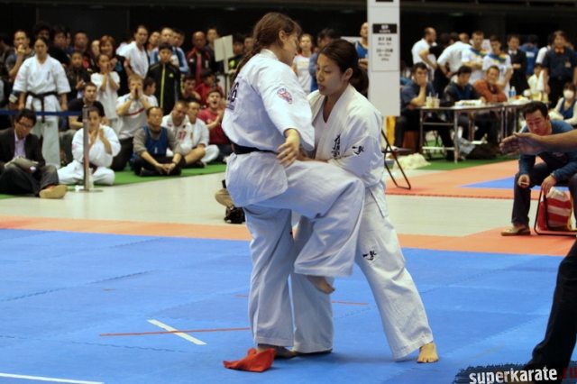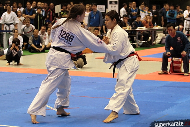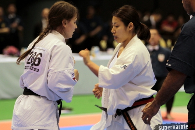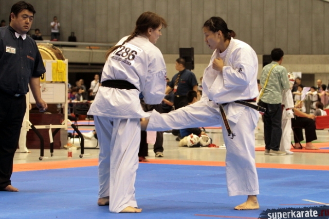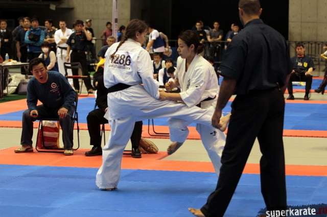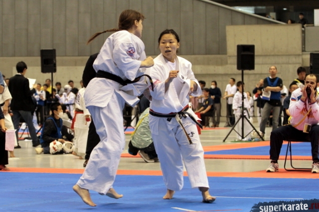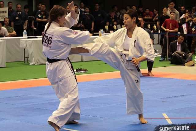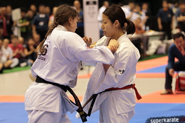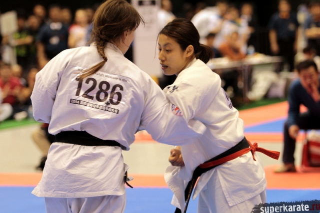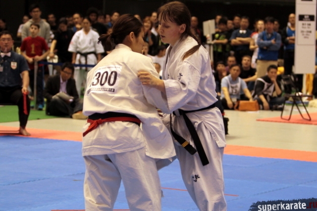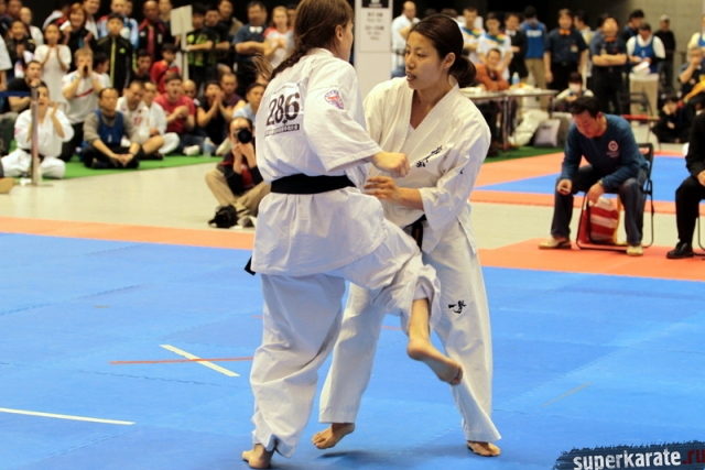 Все было по делу, остро и четко. Ударными стали все выбираемые обреченными соперницами расстояния, в руках появилось разнообразие. Казалось уже списанные из арсенала удары ногами в голову заиграли новыми красками, в ход пошла даже "тяжелая артиллерия" в виде маваши гери в голову.