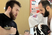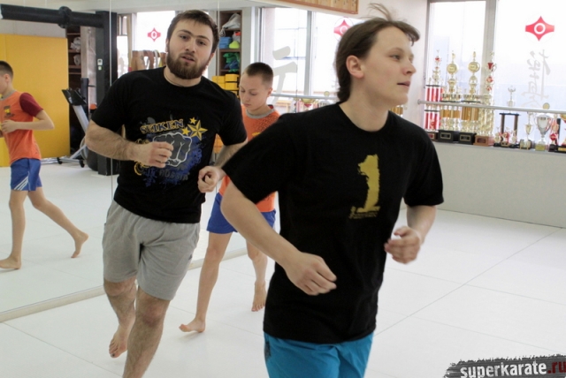 Работа шла нон-стопом: бой с тенью, набивка, макивара, лапы, щит, мешок... объем огромный. Насколько эффективен такой подход в подготовке мы узнаем уже в эту субботу.