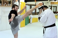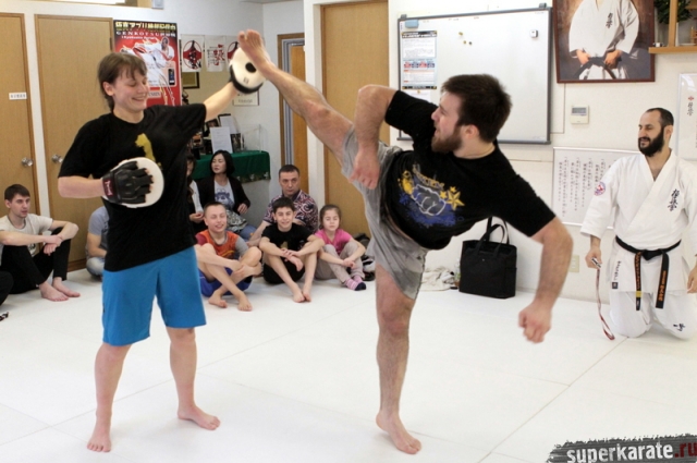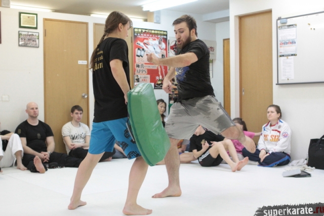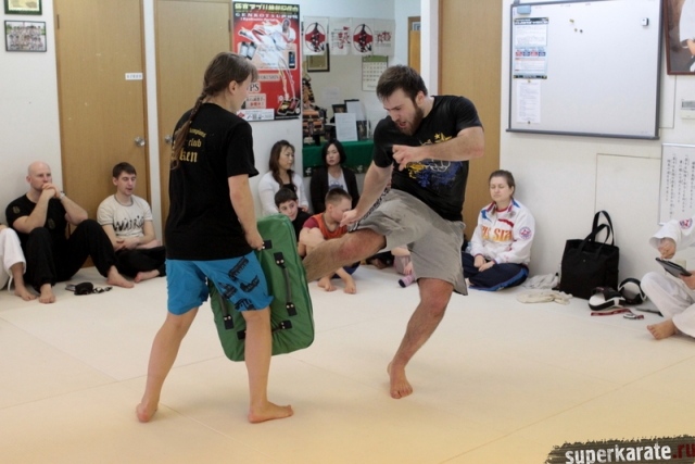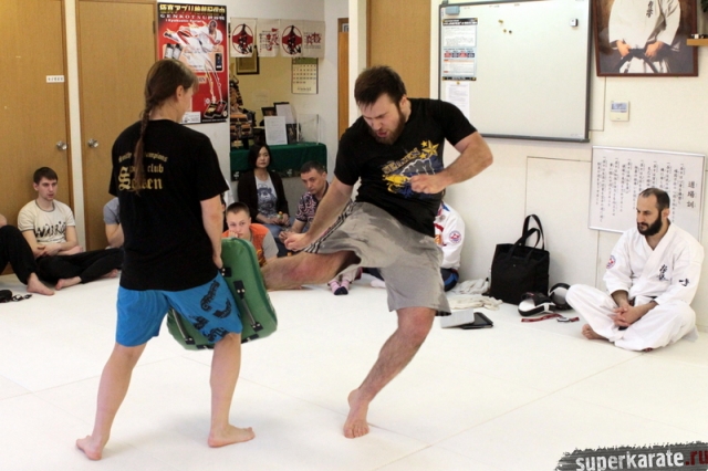 Сам Артур Ованнисян на одной половине доджо тренировал по расписанию своих японских учеников. В паузах между группами подключался в тренировочный процесс.