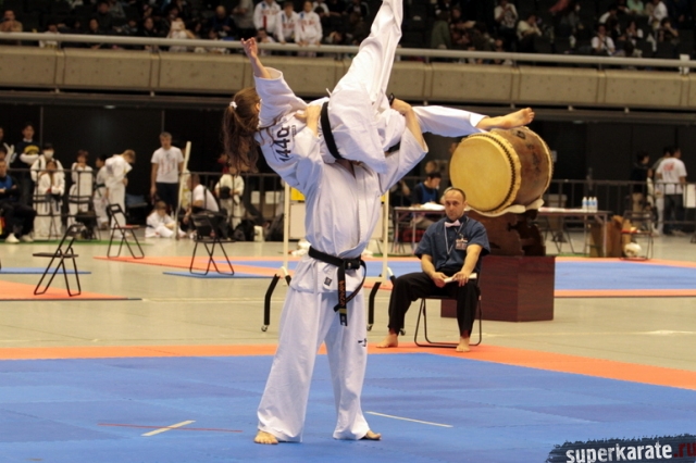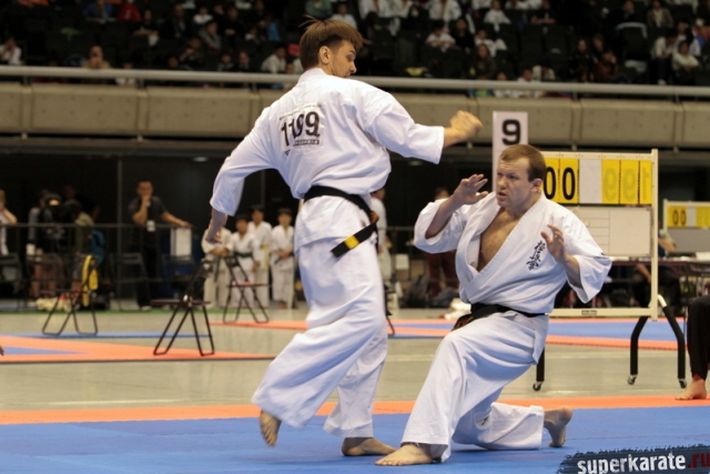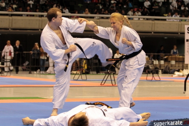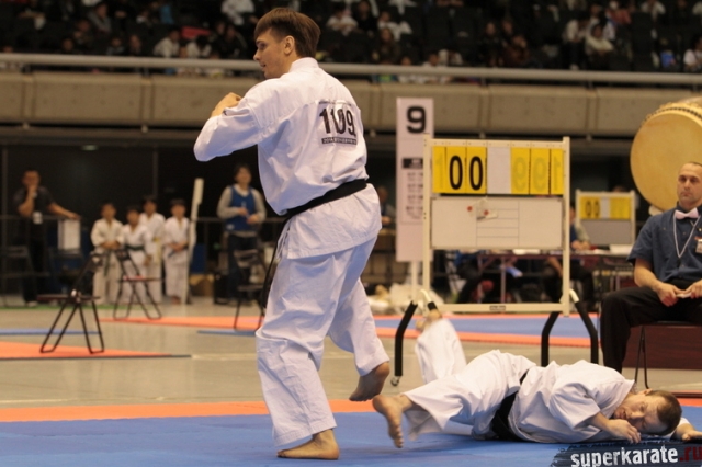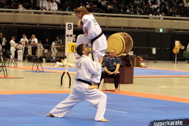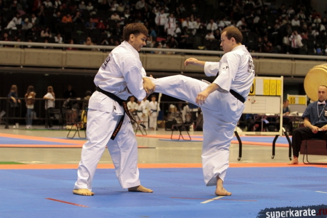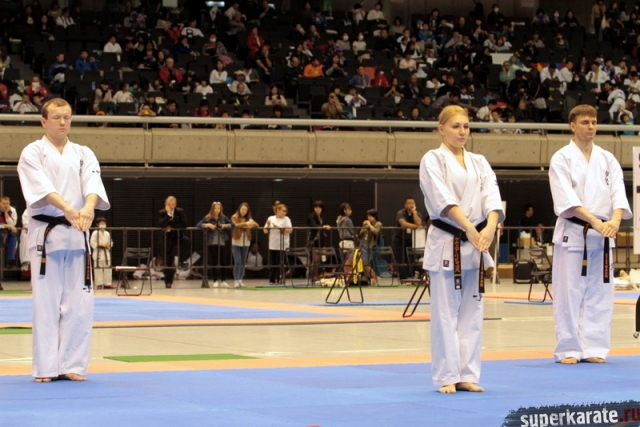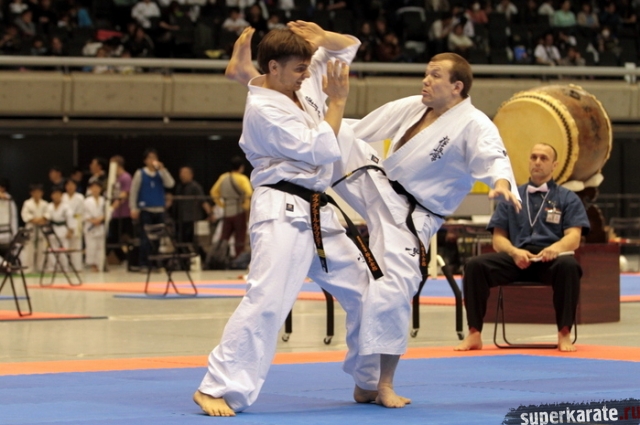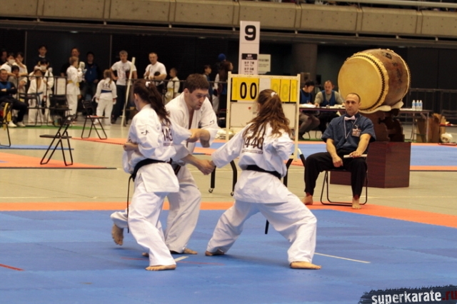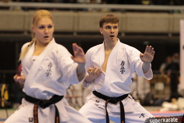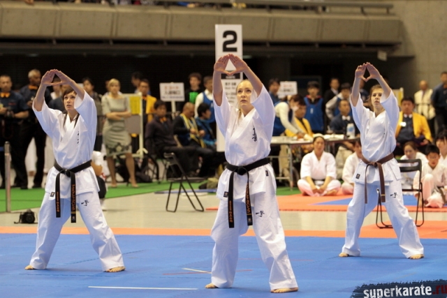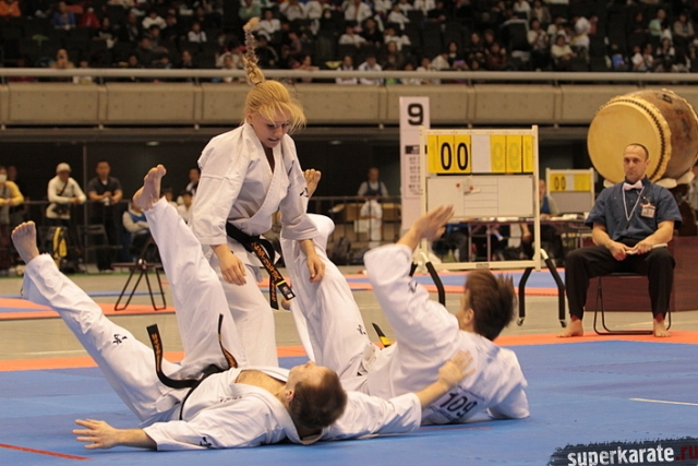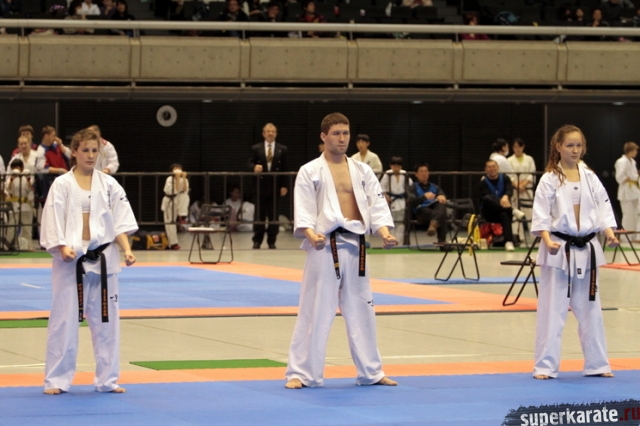 21 апреля 2014 года, во второй турнирный день Чемпионатов мира по киокушинкай, проходила самая зрелищная часть соревнований по ката - командное ката с бункаем. Не будем рассматривать спортивную составляющую этих соревнований, это тема отдельного разговора, но то что к командному ката было прикованно пристальное внимание и именно они заслужили самые бурные аплодисменты - это факт.