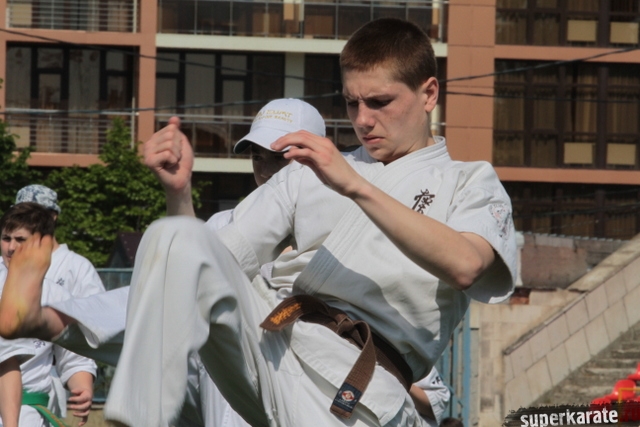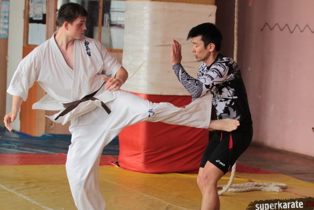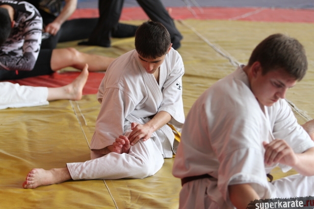 Отдельно от всех занималась группа спортсменов, которым предстоит выступать на ближайшем Первенстве Европы по киокушинкай.