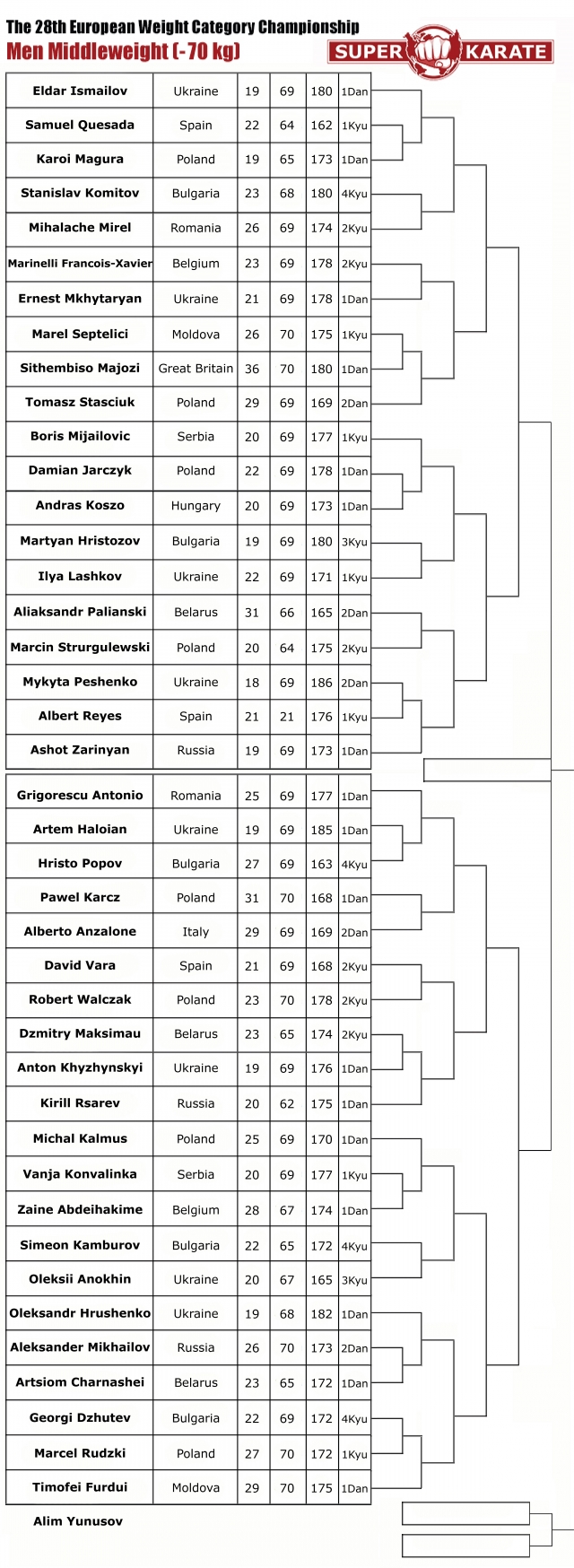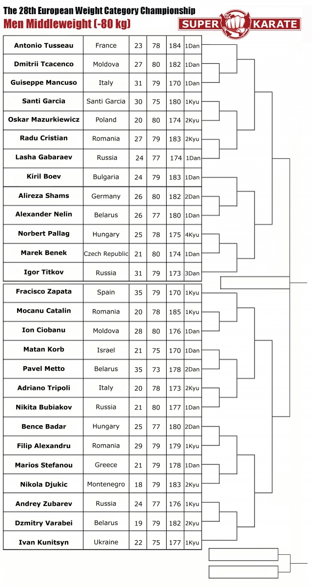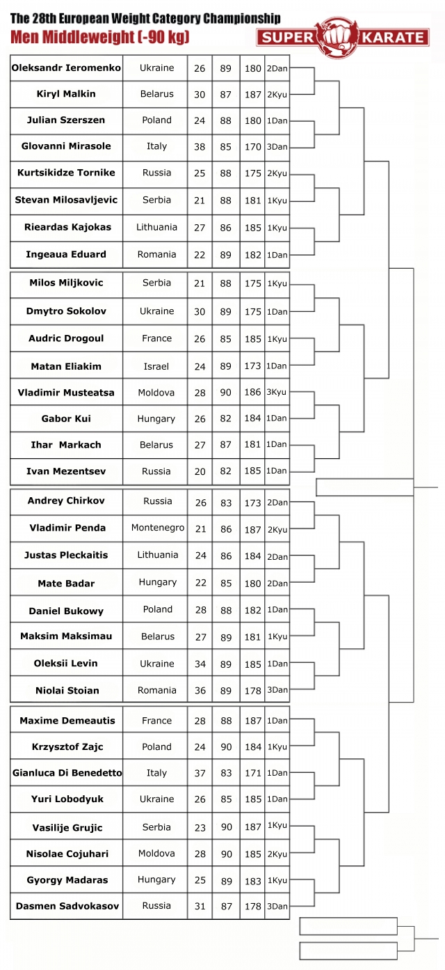 Пули 28 Чемпионата Европы по киокушинкай (мужчины)