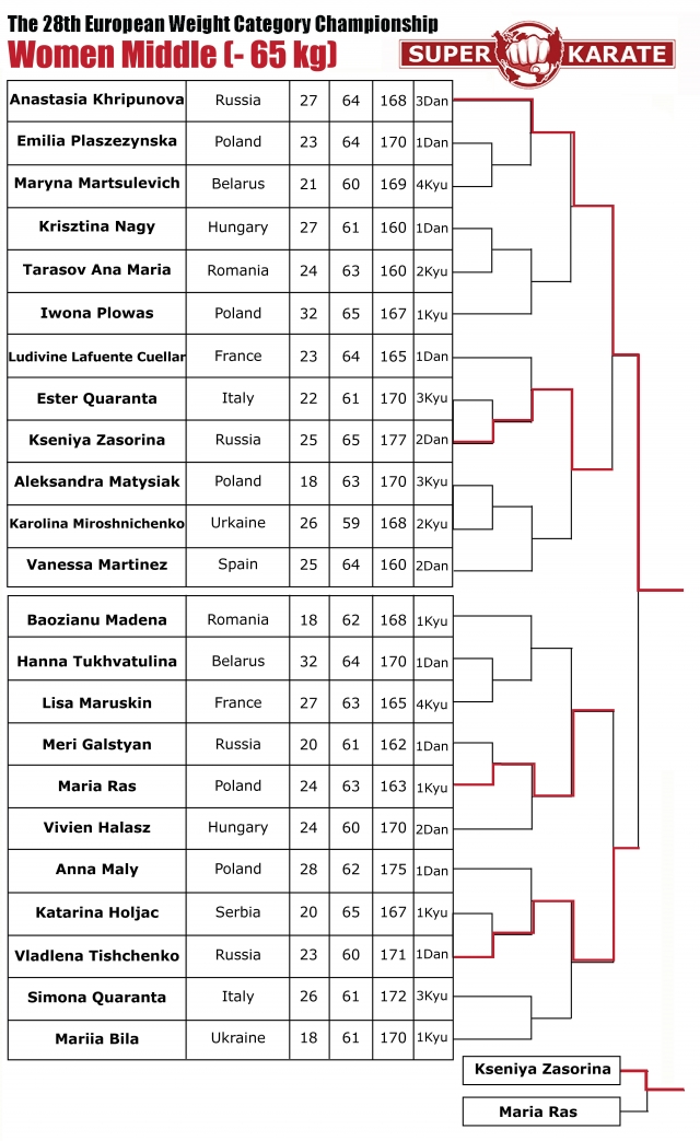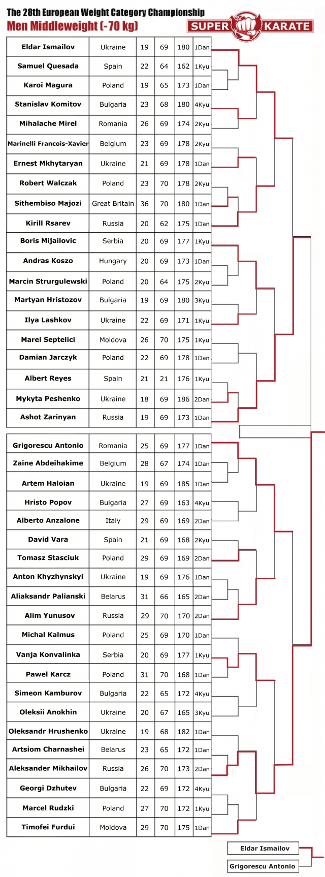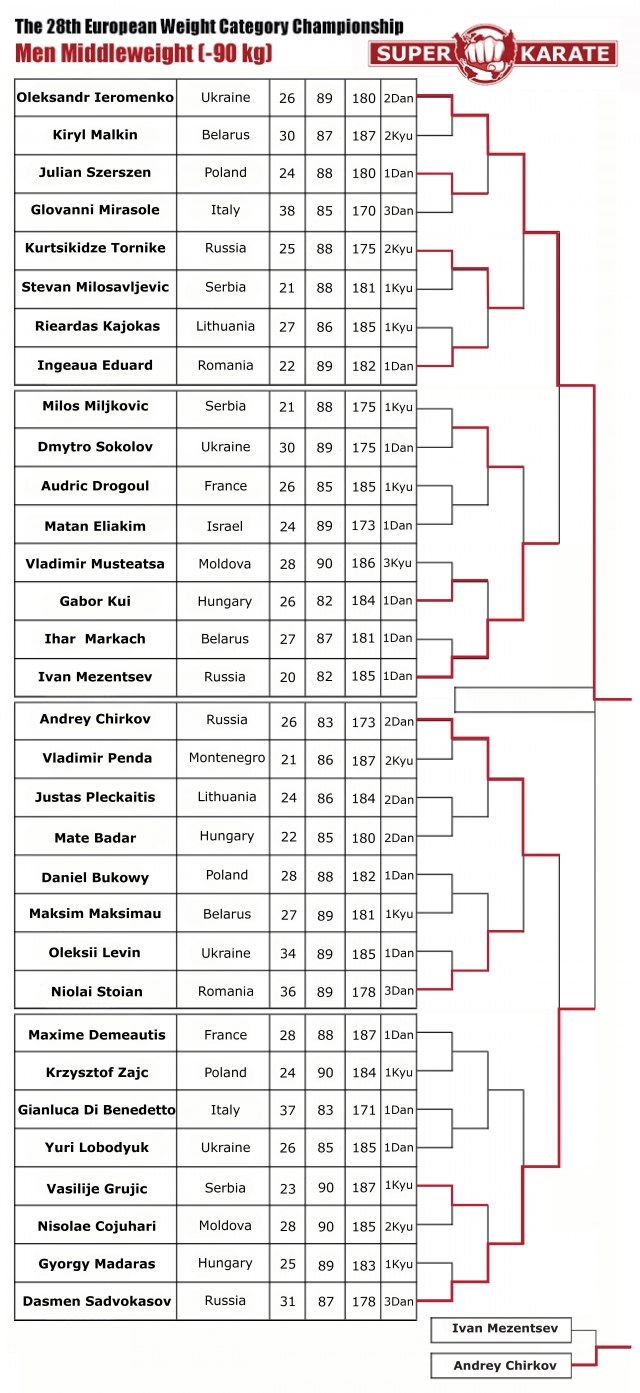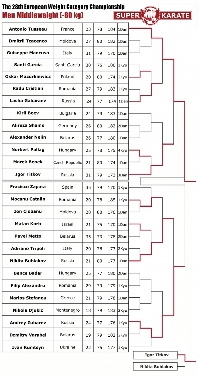 Проведенные пули 28 Чемпионата Европы по киокушинкай каратэ