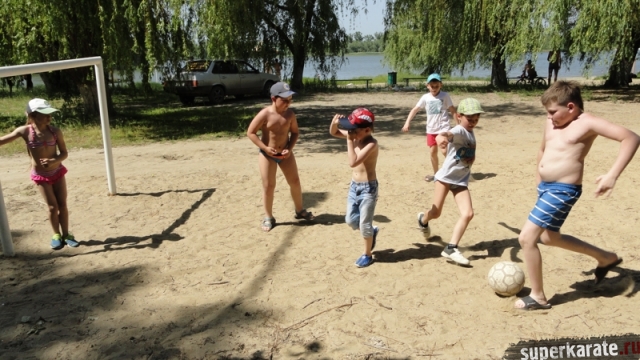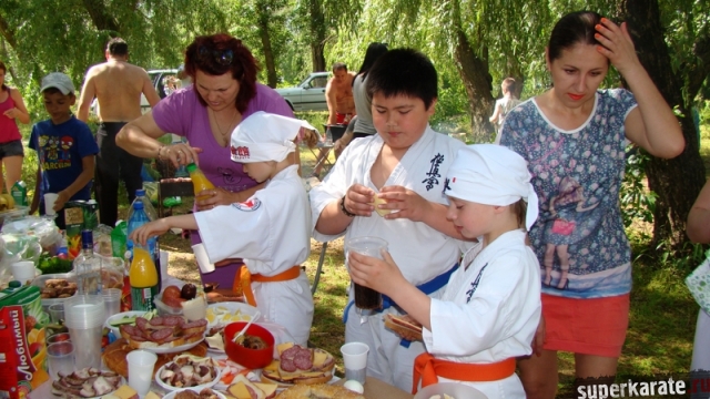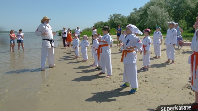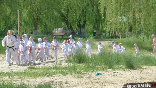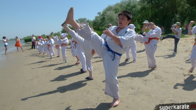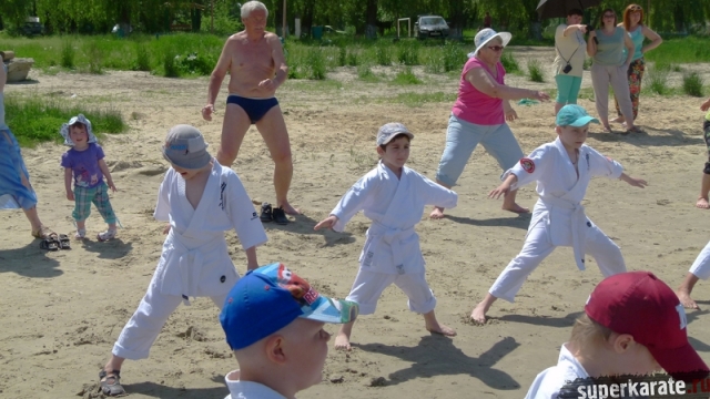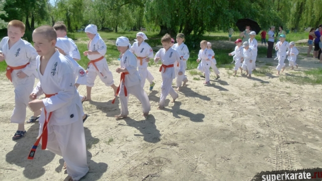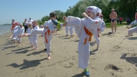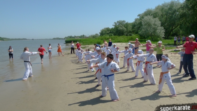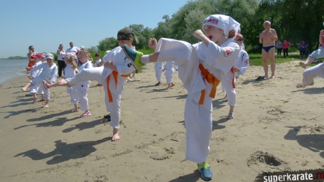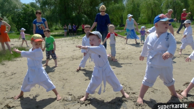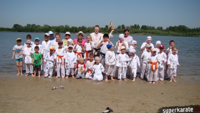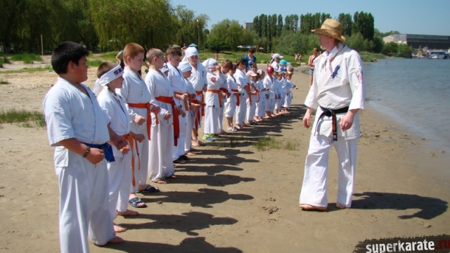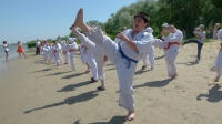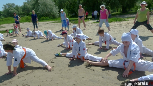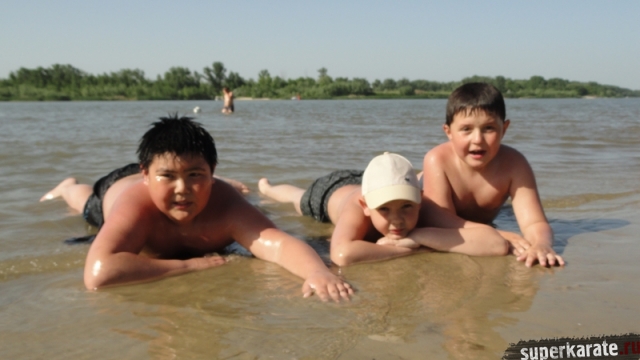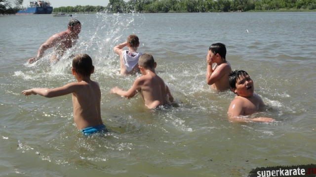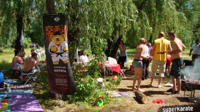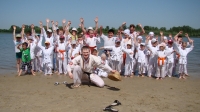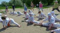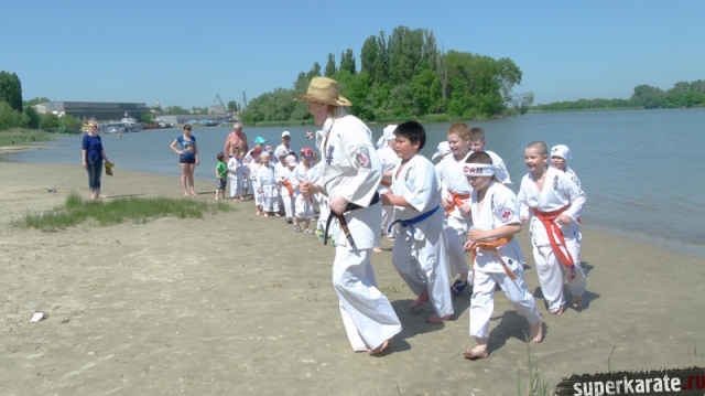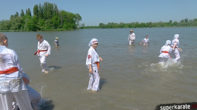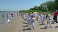 В одни из майских выходных каратисты города Азова разных возрастов (от 3 до 72 лет), под баян и гитару вышли потренироваться и отдохнуть на реку Дон.