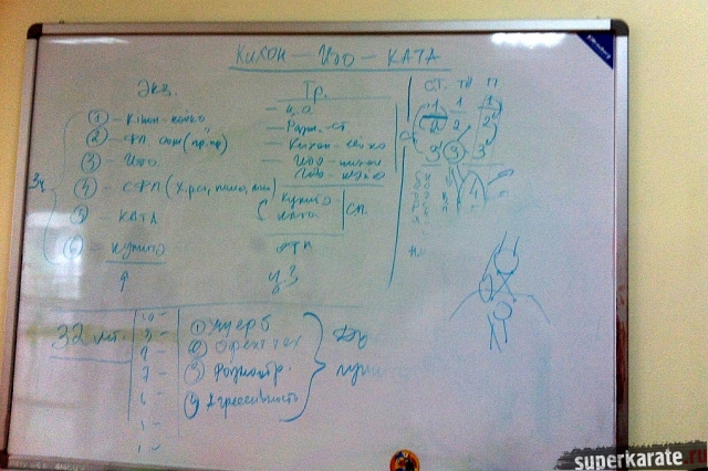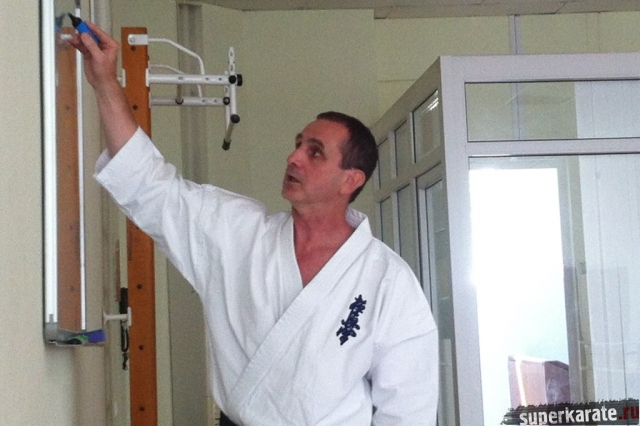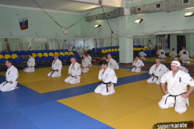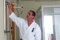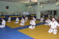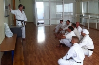 Первый день был посвящен теоретической части – шихан рассказал о подготовке к аттестации в соответствии с последними изменениями в экзаменационной программе, указал на особенности проведения экзаменов в Японии и России, провел анализ системы ката в киокусинкай.