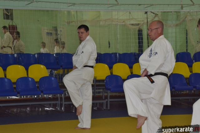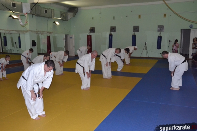 За теорией последовала практика. Инструктора попробовали выполнение базовых ката в режиме реального боя. Детально была рассмотрена взаимосвязь кихон-ката-кумитэ.